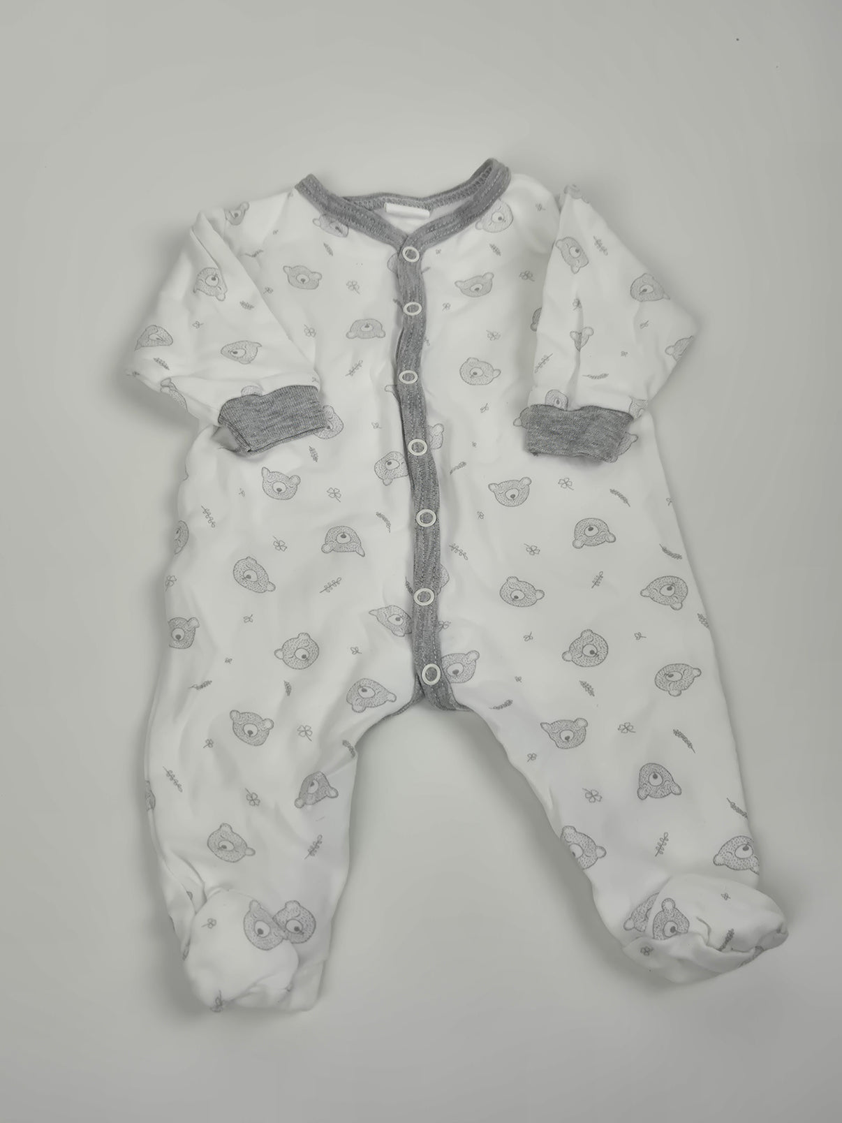 Pohodlné dupačky značky New Arex ve velikosti 56 v neutrální bílo-šedé kombinaci jsou skvělou volbou pro každé miminko. Roztomilý potisk medvídků a jemných větviček doplňuje kontrastní šedé lemování a manžetky, které dodávají outfitu stylový vzhled. Praktické zapínání po celé délce usnadňuje přebalování i oblékání. Díky univerzálním barvám se hodí pro holčičky i chlapečky.