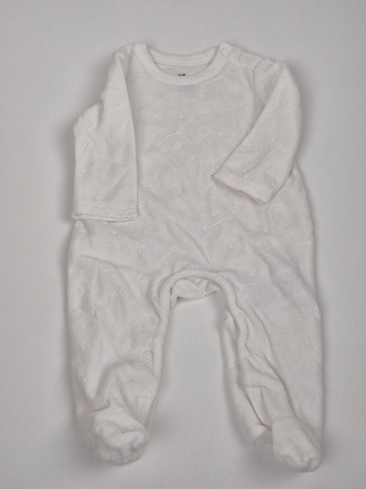 Jemné dupačky značky Pepco ve velikosti 62 v čistě bílé barvě s decentním reliéfním vzorem hvězdiček a měsíčků jsou ideální volbou pro novorozence. Praktické zapínání na patentky na rameni a mezi nožičkami usnadňuje oblékání i přebalování. Měkký materiál je příjemný k dětské pokožce a zajišťuje maximální pohodlí během spánku i odpočinku. Unisex provedení, vhodné pro holčičky i chlapečky.