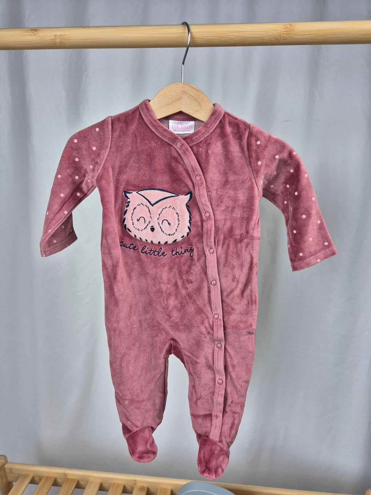 Pohodlné a hebké dupačky značky Pepco ve velikosti 68, v krásném starorůžovém odstínu. Dupačky jsou ozdobené výšivkou roztomilé sovičky a nápisem „cute little thing“, rukávy s puntíky dodávají celkovému vzhledu jemný hravý detail. Praktické boční zapínání na patentky usnadňuje oblékání i přebalování. Ideální volba na spánek i pohodové dny doma pro malé holčičky.