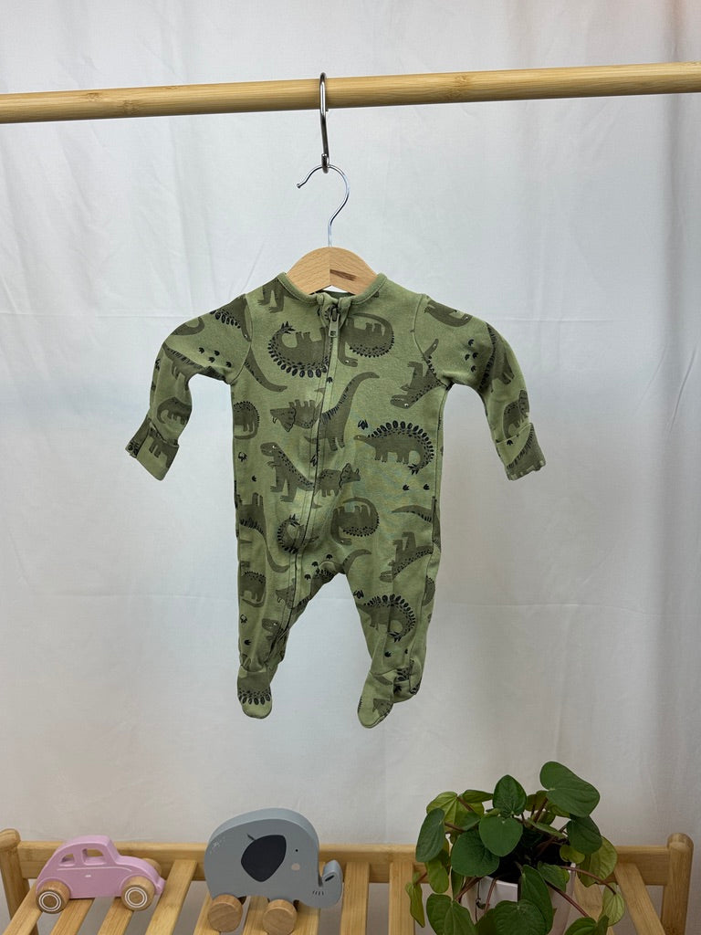 Roztomilé dupačky značky F&F ve velikosti 62 s motivy dinosaurů. Tyto zelené dupačky jsou vyrobené z měkkého a příjemného materiálu, který je šetrný k citlivé dětské pokožce. Praktické zapínání na zip po celé délce usnadňuje oblékání i přebalování, zatímco integrované nožičky udržují děťátko v teple. Hravý dinosauří design přidává dupačkám na originalitě. Perfektní volba pro pohodlný spánek i každodenní nošení doma. Pohodlí a styl v jednom!