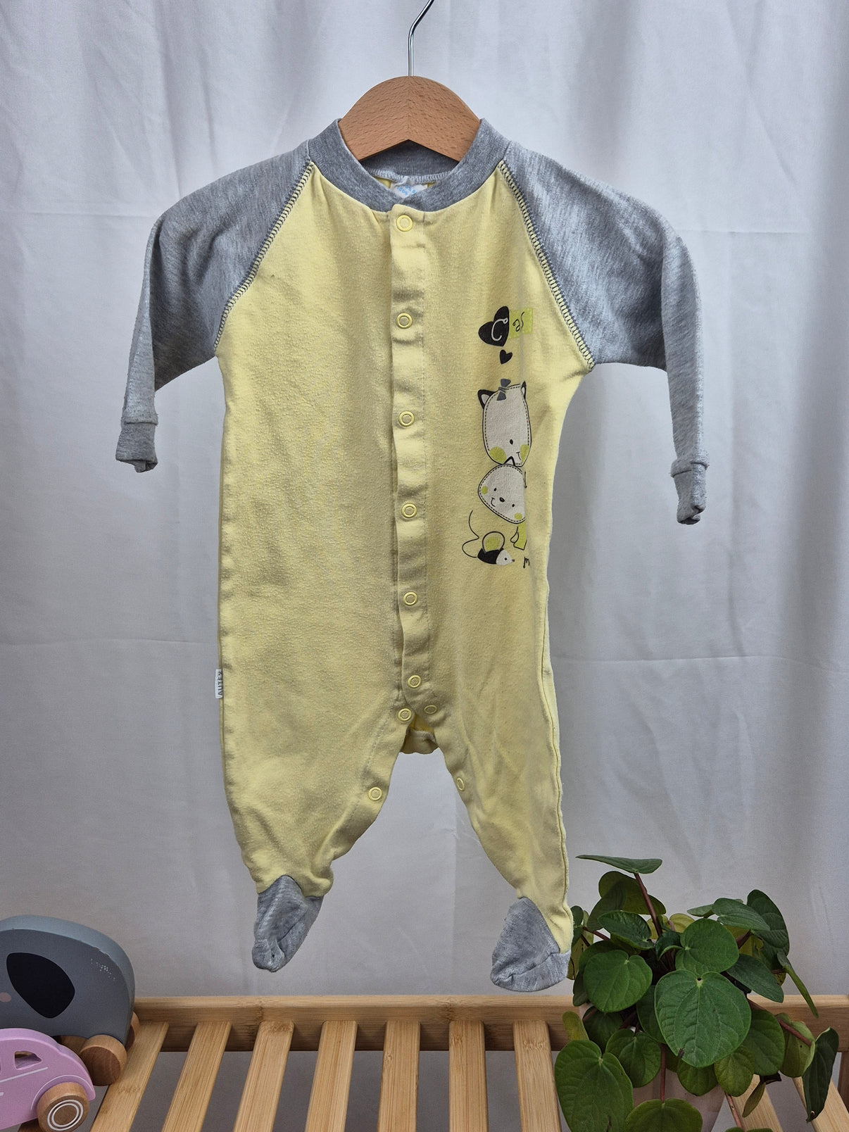 Roztomilé dupačky od značky Autex Baby v jemné kombinaci světle žluté a šedé barvy jsou perfektní volbou pro pohodlí tvého miminka. Přední část zdobí roztomilý motiv kočiček, který dodává dupačkám hravý a něžný vzhled. Dlouhé rukávy a nožičky zajistí dostatečné teplo, zatímco praktické zapínání na patentky po celé délce usnadní oblékání i přebalování. Měkký a prodyšný materiál je ideální pro spánek i každodenní objevování světa. Skvělá volba pro malé kočičí milovníky!
