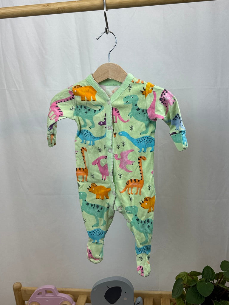 Dupačky s motivy dinosaurů značky Next jsou roztomilým a pohodlným kouskem pro vaše nejmenší. Jemně zelený základ je ozdoben barevnými a hravými dinosaury v odstínech růžové, modré, oranžové a fialové, což dodává dupačkám veselý a zábavný vzhled. Praktické zapínání na druky po celé délce usnadňuje oblékání i přebalování. Dupačky jsou vyrobeny z měkkého a příjemného materiálu, který zajistí pohodlí a teplo během spánku nebo denního nošení. Ideální volba pro malé objevitele a milovníky dinosaurů!