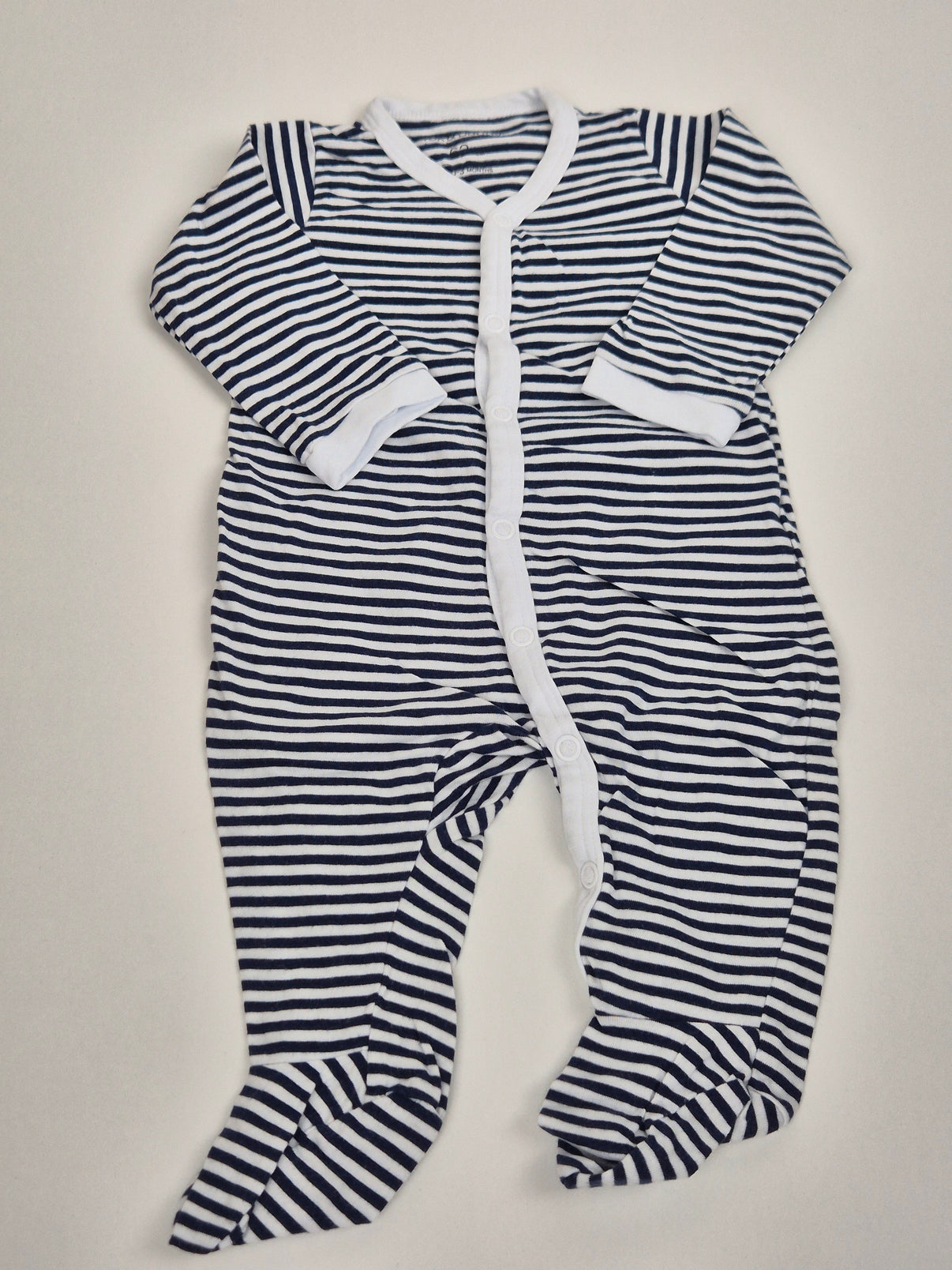Pruhované dupačky od značky Sinsay ve velikosti 62 kombinují stylový námořnický vzhled s maximálním pohodlím. Modro-bílé proužky doplňují bílé lemy a praktické zapínání po celé délce, které výrazně usnadní oblékání i přebalování. Měkký materiál je šetrný k citlivé pokožce miminka a integrované ťapky udrží nožičky pěkně v teple. Univerzální kousek vhodný jak pro chlapečky, tak pro holčičky – ideální na spaní i běžné nošení.