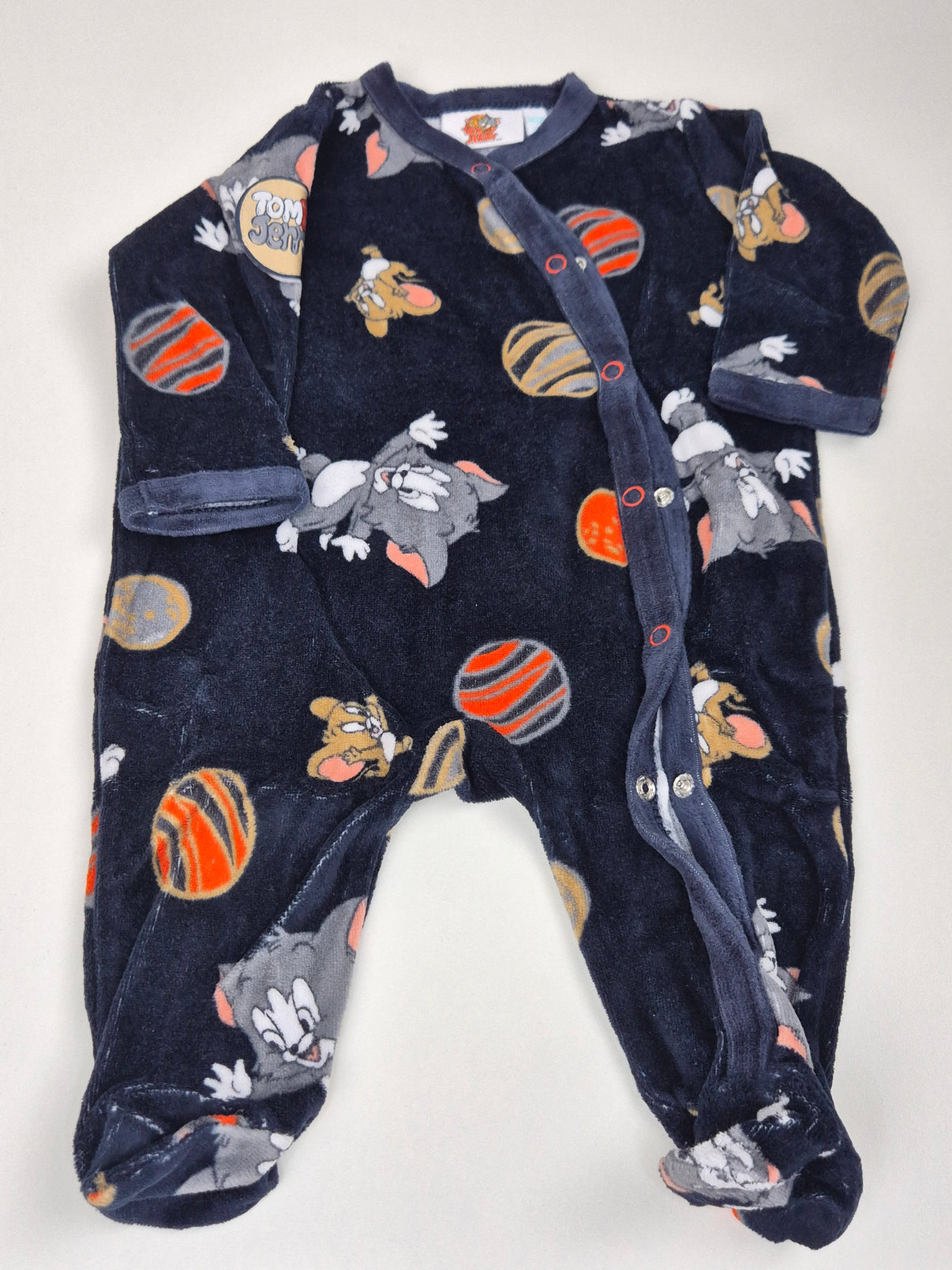 Tyhle dupačky značky Pepco ve velikosti 62 jsou ušité z měkkého fleecového materiálu v tmavě modré barvě a zdobí je celopotisk s motivem Toma a Jerryho. Díky zapínání na patentky po celé délce se snadno oblékají a skvěle se hodí na zimní období.