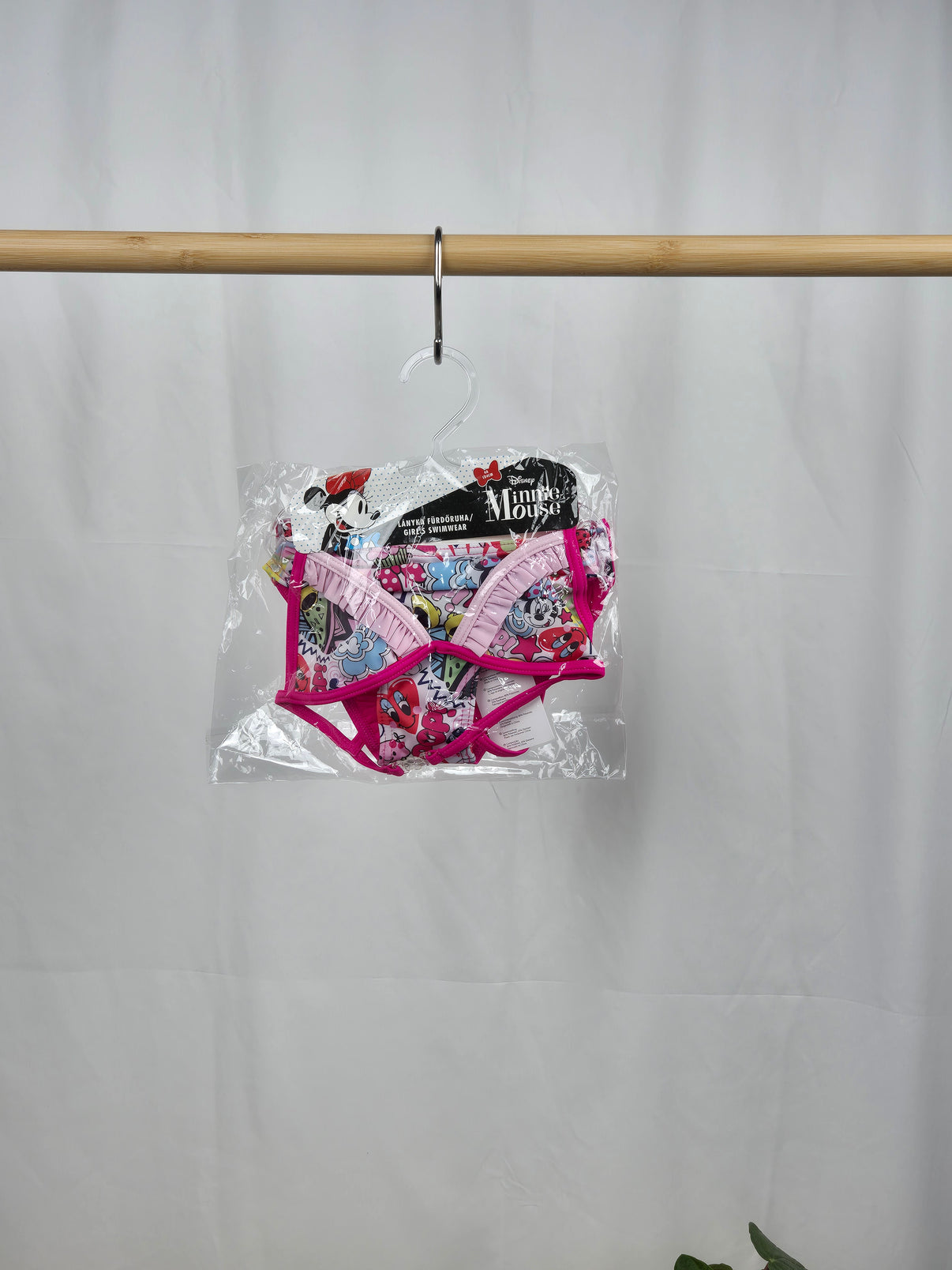 Hravé dvoudílné plavky s motivem Minnie Mouse potěší každou malou milovnici tohoto ikonického Disneyho charakteru. Plavky v kombinaci růžové a barevných potisků přinášejí veselý letní vzhled. Horní díl je navržen pro pohodlí a snadné nošení, zatímco spodní díl má elastický pas pro perfektní přizpůsobení. Materiál je rychleschnoucí a příjemný na pokožku, ideální pro dovádění u vody i na pláži. Skvělý kousek pro malé princezny na letní dobrodružství!