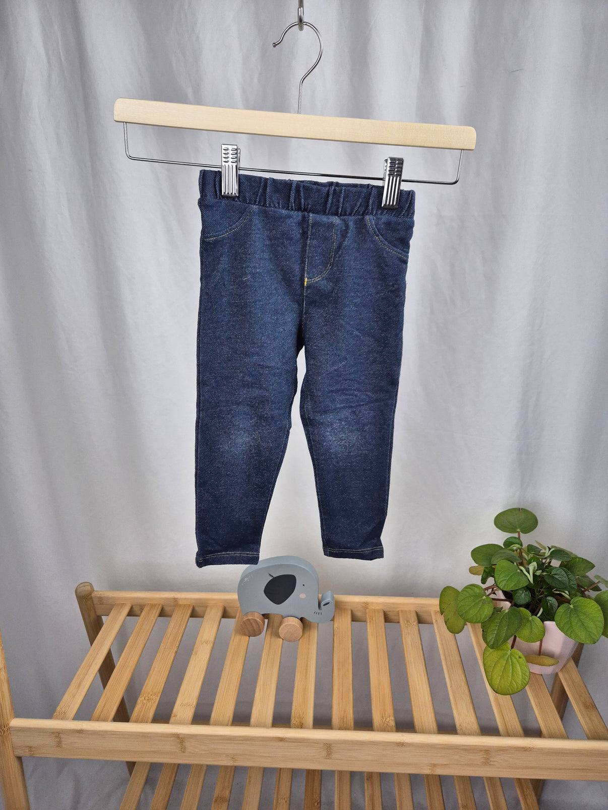 Stylové dívčí džegíny F&F ve velikosti 92 kombinují pohodlí legín a vzhled klasických džín. Tmavě modré provedení s jemným prošitím působí moderně a hodí se ke každému outfitu – ať už k tričku, tunice nebo svetříku. Díky elastickému pasu se snadno oblékají a skvěle drží po celý den. Ideální volba na každodenní nošení do školky, na hřiště i rodinné výlety.