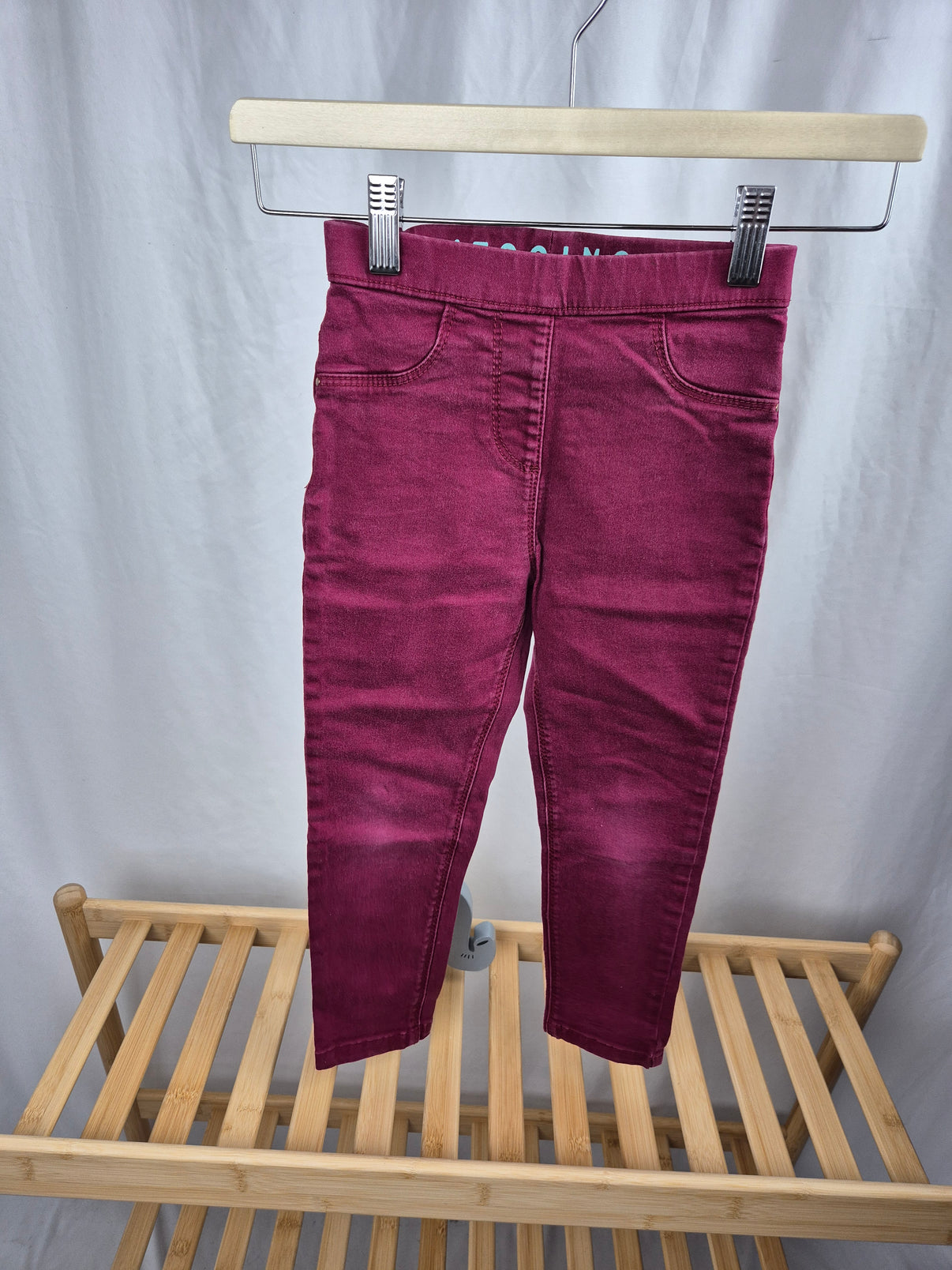 Stylové dívčí džegíny od značky George v sytě malinově vínové barvě kombinují vzhled džín s pohodlím legín. Pružný pas bez zapínání usnadňuje oblékání a zaručuje maximální komfort při nošení. Díky lehce opranému efektu působí moderně a snadno se kombinují s tričky, tunikami i mikinami. Skvělá volba pro holky na běžné nošení do školky, školy i na hřiště.