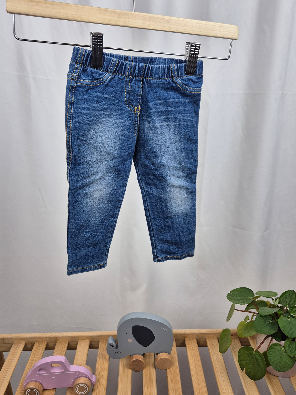 Stylové džegíny od značky Next jsou perfektní kombinací pohodlí a moderního vzhledu. Elastický pas umožňuje snadné oblékání a přizpůsobení, zatímco měkký a pružný materiál zajistí maximální komfort při nošení. Denimový vzhled s jemným vyšisováním dodává džegínám trendy look, který se skvěle hodí k tričku, mikině nebo svetříku. Praktické kapsy na zadní straně doplňují klasický styl. Skvělý kousek pro každodenní nošení! 👖✨
