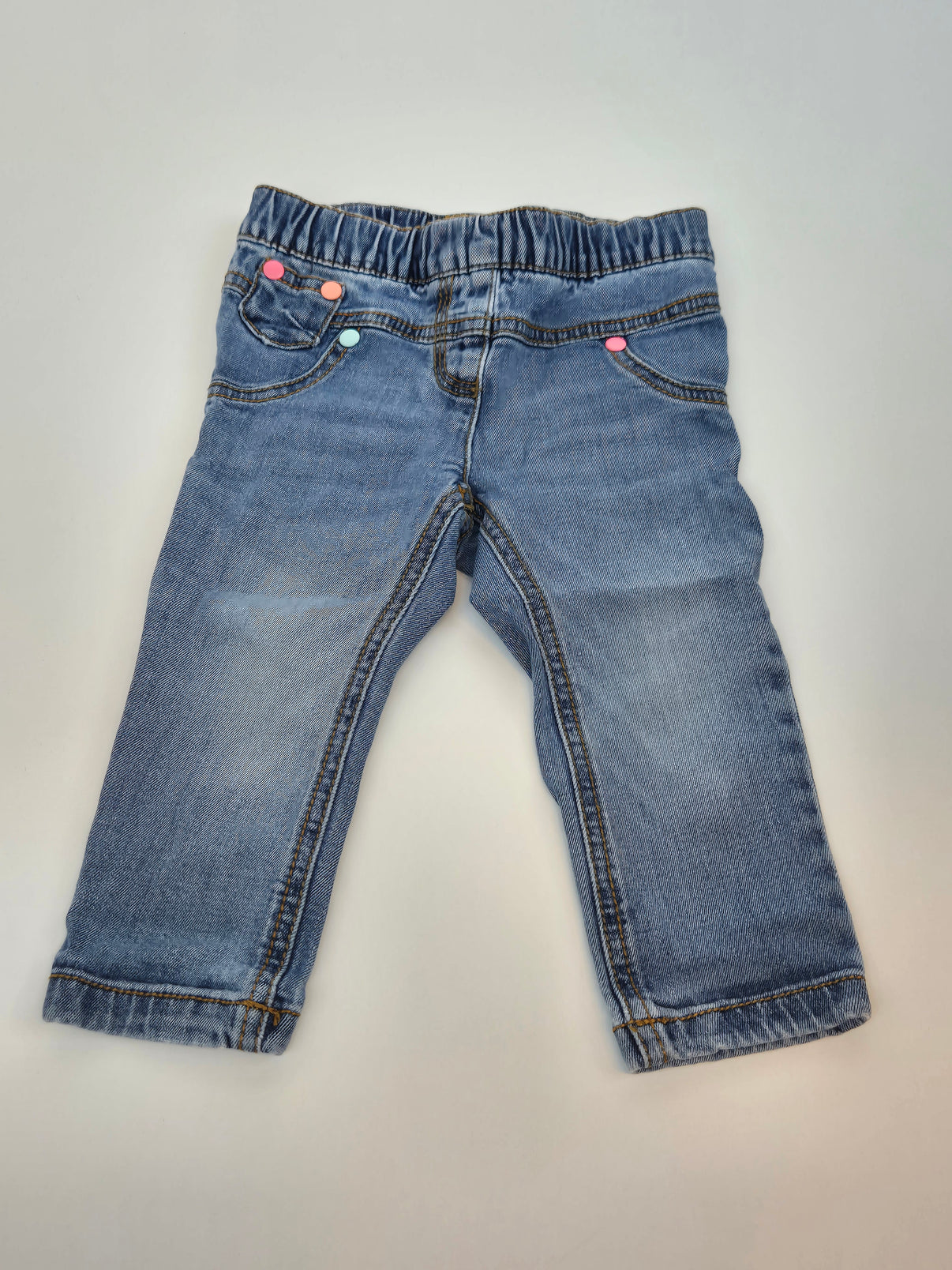 Stylové světle modré džegíny značky Next jsou perfektní kombinací pohodlí a trendy vzhledu! Měkký a pružný materiál zajistí maximální komfort při nošení a elastický pas umožní snadné oblékání. Opraný efekt a kontrastní prošívání dodávají džegínám autentický džínový vzhled. Barevné cvočky na kapsách přidávají hravý detail, který rozzáří každý outfit. Skvěle se hodí k tričkům, mikinám i svetříkům – ideální na každý den!