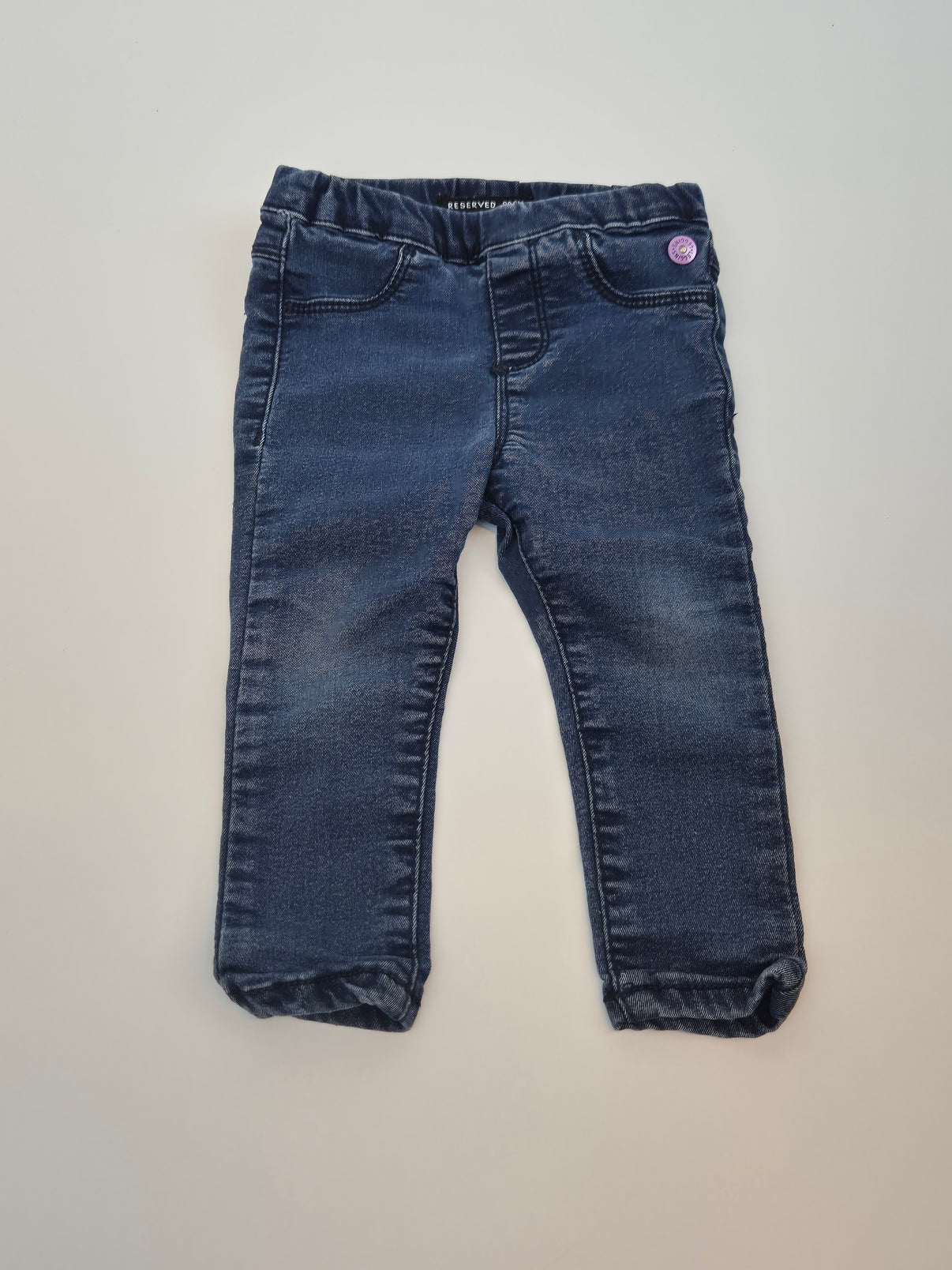 Stylové tmavě modré džegíny značky Reserved jsou skvělou volbou pro malé parádnice! Pružný a pohodlný materiál zajišťuje maximální komfort při nošení, zatímco elastický pas umožňuje snadné oblékání a přizpůsobení postavě. Opraný efekt dodává džegínám moderní vzhled, který připomíná klasické džíny. Malý fialový knoflíček na pasu přidává jemný detail. Skvělý kousek na každý den – perfektně se hodí k tričkům, mikinám i svetříkům!