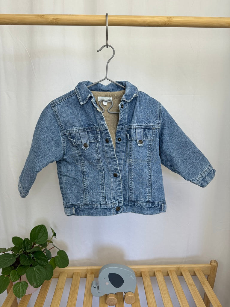 Modrá džínová bunda velikosti 92 s podšívkou z fleecu je skvělou volbou na přechodné období. Díky teplému vnitřnímu materiálu zajišťuje komfort a ochranu před chladnějším počasím. Bunda má zapínání na patentky a dvě náprsní kapsy, které dodávají stylový vzhled. Perfektní pro malé kluky na procházky i do města.