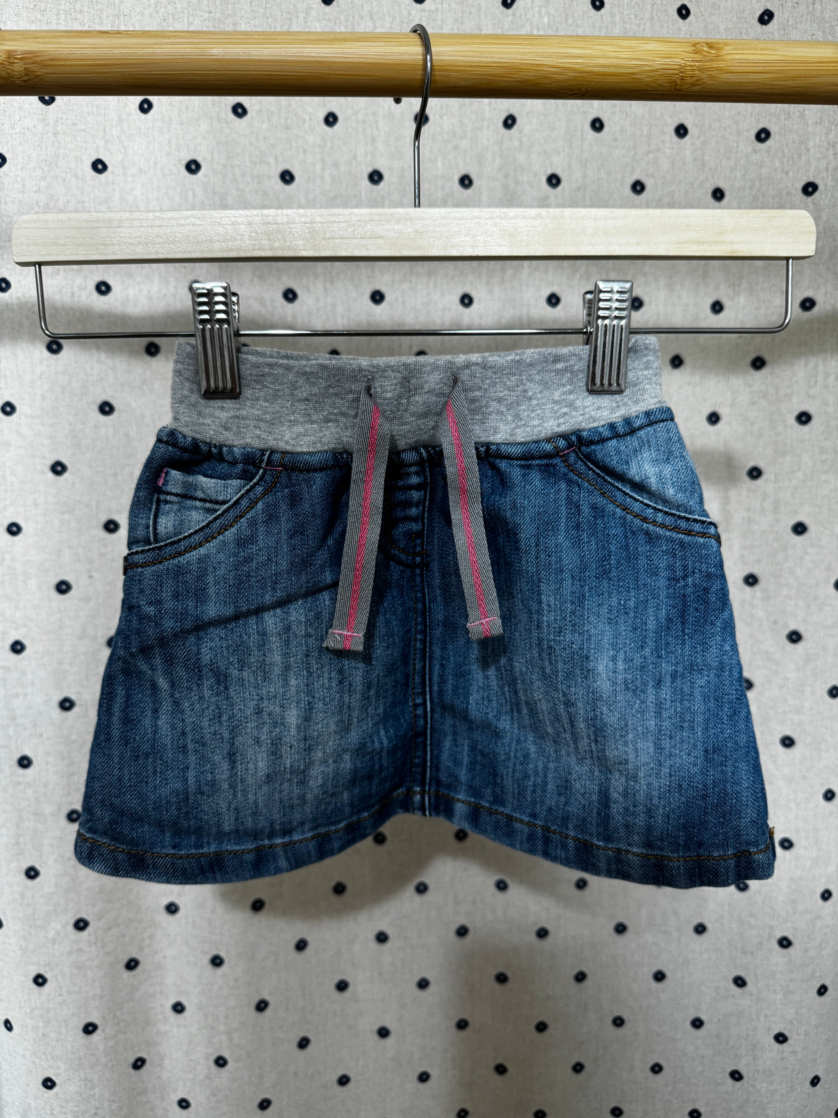 Stylová dětská džínová sukně značky Next ve velikosti 86. Tato sukně je vyrobena z měkkého džínového materiálu, který zajišťuje pohodlí během celého dne. Elastický pas s šedou stahovací šňůrkou umožňuje snadné oblékání a dokonalé přizpůsobení. Sukně je vybavena praktickými kapsami, které dodávají outfitu moderní a ležérní vzhled. Perfektní volba pro malé princezny na každodenní nošení, do školky nebo na procházky.