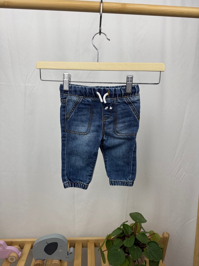 Pohodlné džínové kalhoty F&F ve velikosti 68 v klasickém modrém odstínu s jemně opraným efektem. Elastický pas se šňůrkou umožňuje snadné oblékání a přizpůsobení pro maximální pohodlí. Praktické kapsy a pružné lemy na nohavicích dodávají kalhotám stylový a moderní vzhled. Skvěle se hodí na každodenní nošení – do školky, na procházky i rodinné výlety. Univerzální kousek, který nesmí chybět v šatníku malých fešáků i parádnic.