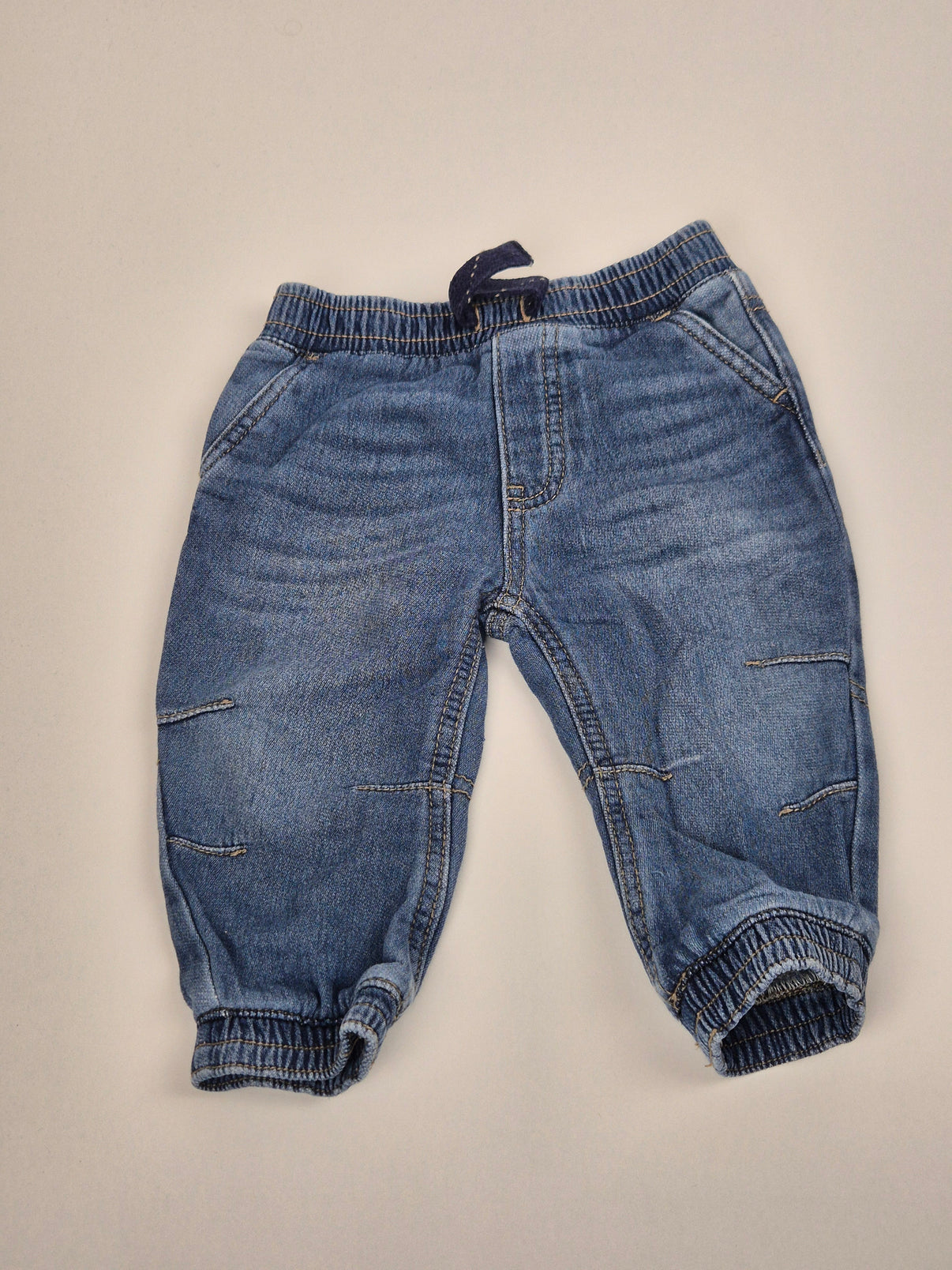 Pohodlné džínové kalhoty značky George v světle modrém provedení, které na první pohled zaujmou ležérním stylem a měkčím denimem ideálním pro nejmenší. Díky elastickému pasu se šňůrkou a pružným lemům na nohavicích skvěle drží a neomezují v pohybu. Zajímavé prošití na nohavicích a zadní kapsy dodávají kalhotám stylový vzhled. Skvělá volba pro chlapečky na každodenní nošení doma, na hřiště i na cesty.