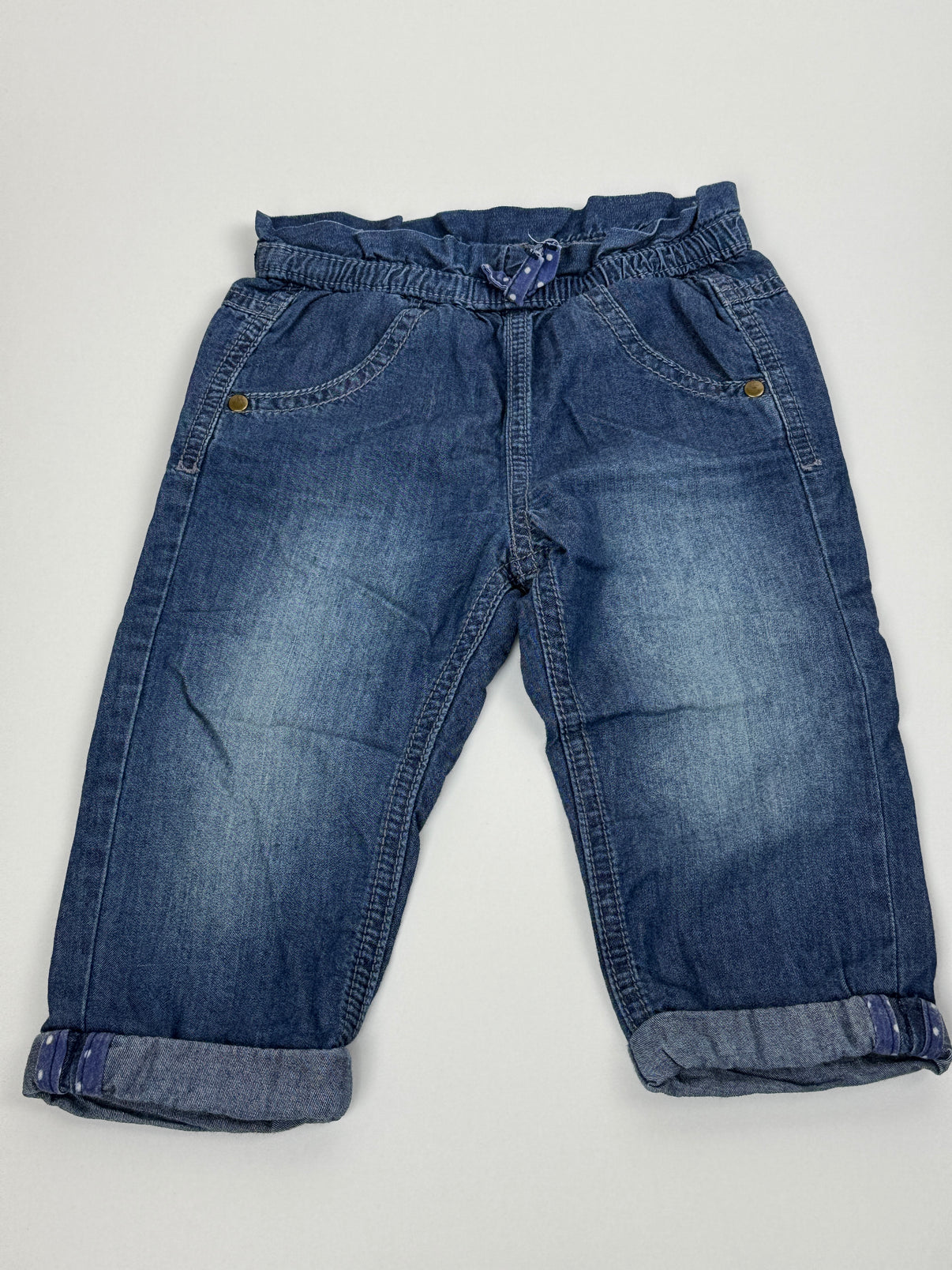 Pohodlné dětské džíny značky F&F ve velikosti 74 kombinují styl a praktičnost. Klasický modrý denim s jemným vyšisovaným efektem působí moderně, zatímco pružný pas s ozdobnou mašličkou a měkký materiál zajišťují maximální pohodlí při nošení. Ohnuté nohavice s kontrastní podšívkou dodávají kalhotám roztomilý detail. Ideální kousek pro malé holčičky na každý den – do kočárku, do města i na hřiště.