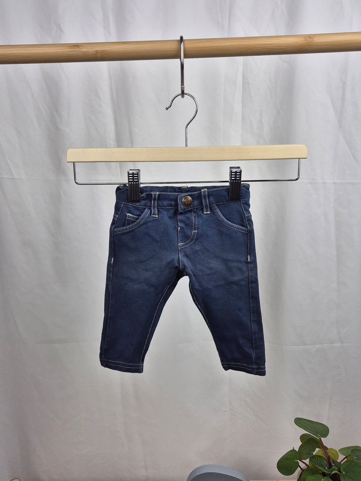 Stylové dětské džíny od značky Fagottino ve velikosti 62. Klasický tmavě modrý denimový vzhled s kontrastním prošíváním dodává kalhotám moderní look. Pohodlný střih s elastickým pasem zajistí snadné oblékání a maximální komfort při nošení. Nechybí přední a zadní kapsy pro autentický džínový styl. Skvělá volba pro každodenní nošení – perfektně se kombinují s body, svetříky i mikinami.