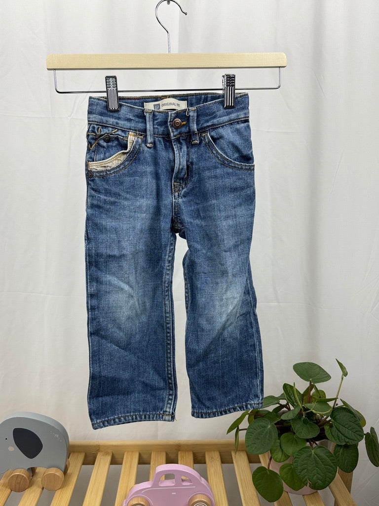 Stylové dětské džíny GAP Original Fit ve velikosti 92. Džíny v klasickém modrém odstínu s lehkým vyšisovaným efektem, který dodává moderní vzhled. Vyrobené z kvalitní džínoviny, která zajišťuje pohodlí i odolnost při každodenním nošení. S praktickými kapsami na přední i zadní straně a zapínáním na zip a knoflík. Skvělá volba pro kluky na běžné nošení i do školky. Tmavomodrá barva se snadno kombinuje s tričky i mikinami.
