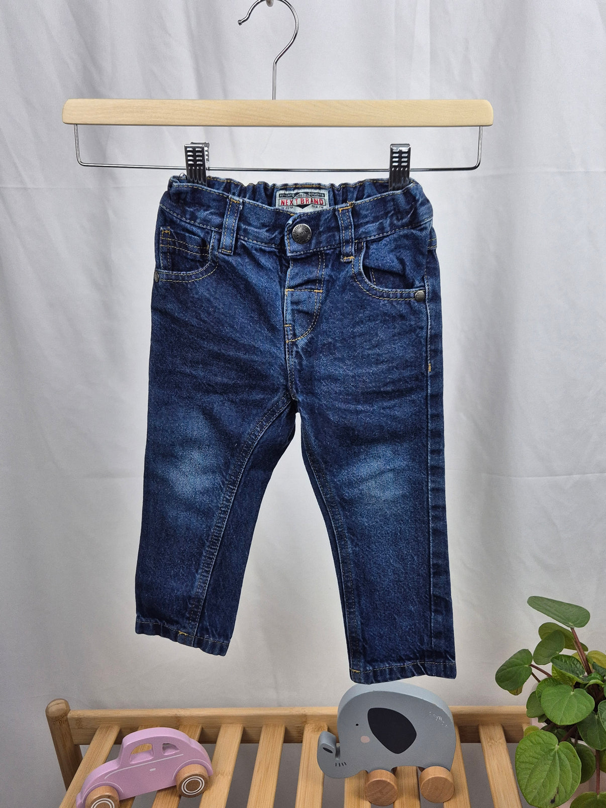 Klasické dětské džíny od značky Next v tmavě modrém denimu s jemným opraným efektem. Pohodlný střih s elastickým pasem vzadu zajišťuje skvělé padnutí a komfort při nošení. Praktické kapsy vpředu i vzadu dodávají džínům klasický vzhled. Skvělý kousek pro každodenní nošení i volnočasové aktivity. Velikost 86, ideální pro malé dobrodruhy.