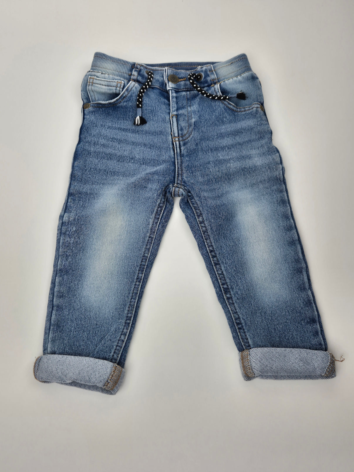 Moderní dětské džíny značky Pepco v klasickém světle modrém denimu s jemným opraným efektem jsou pohodlným a stylovým kouskem do každého dětského šatníku. Měkký pas na gumu s ozdobnou šňůrkou zajišťuje pohodlné nošení, a zároveň drží kalhoty tam, kde mají být. Ohrnuté nohavice dodávají outfitu ležérní vzhled. Perfektní volba na každodenní nošení – do školky, na hřiště i do města. Vhodné pro chlapečky, kteří si potrpí na pohodlí i styl.