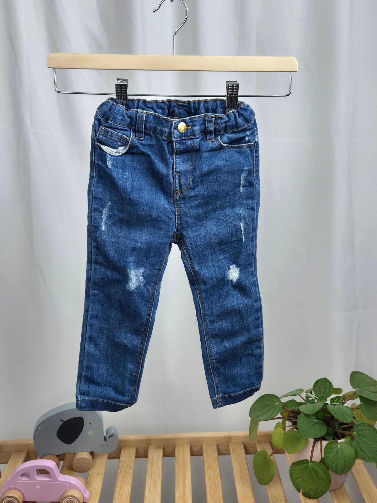 Dětské džíny z Pepco ve velikosti 92 jsou skvělým kouskem na každý den. Klasický středně modrý denim s jemnými “ošoupanými” detaily působí moderně a zároveň pohodlně. Díky pružnému pasu se snadno oblékají a drží tam, kde mají. Hodí se do školky, na hřiště i na výlet s rodinou. Skvělé pro holčičky i kluky.