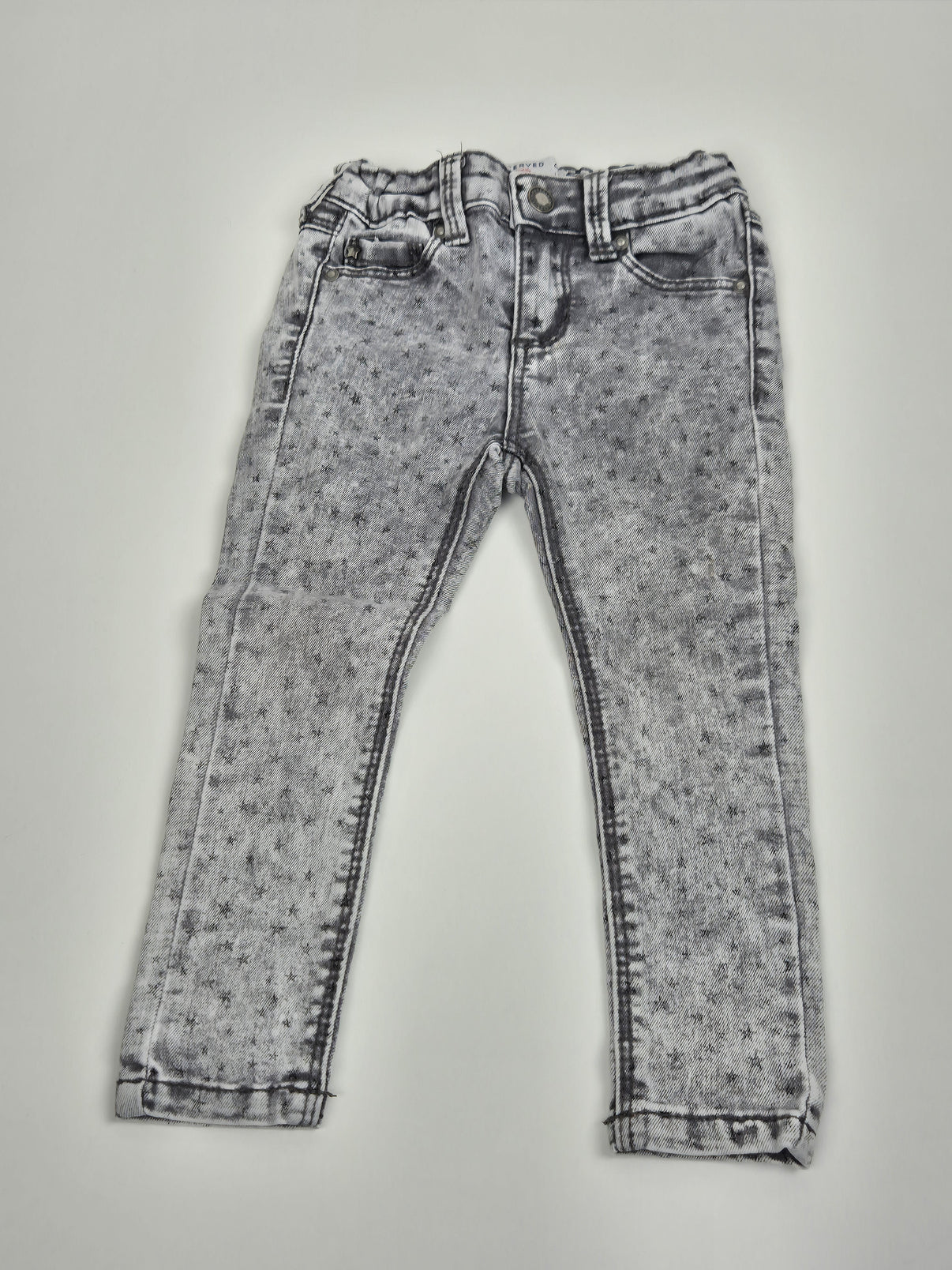 Stylové džíny značky Reserved ve velikosti 92 v šedém denimovém provedení s jemným obnošeným efektem a celoplošným potiskem drobných hvězdiček dodají každému dětskému outfitu šmrnc. Klasický střih s kapsami vpředu i vzadu, zapínáním na knoflík a pružným pasem vzadu zajistí pohodlné nošení během celého dne. Skvěle padnou malým slečnám na každodenní nošení i do školky – moderní a zároveň hravý kousek do šatníku.