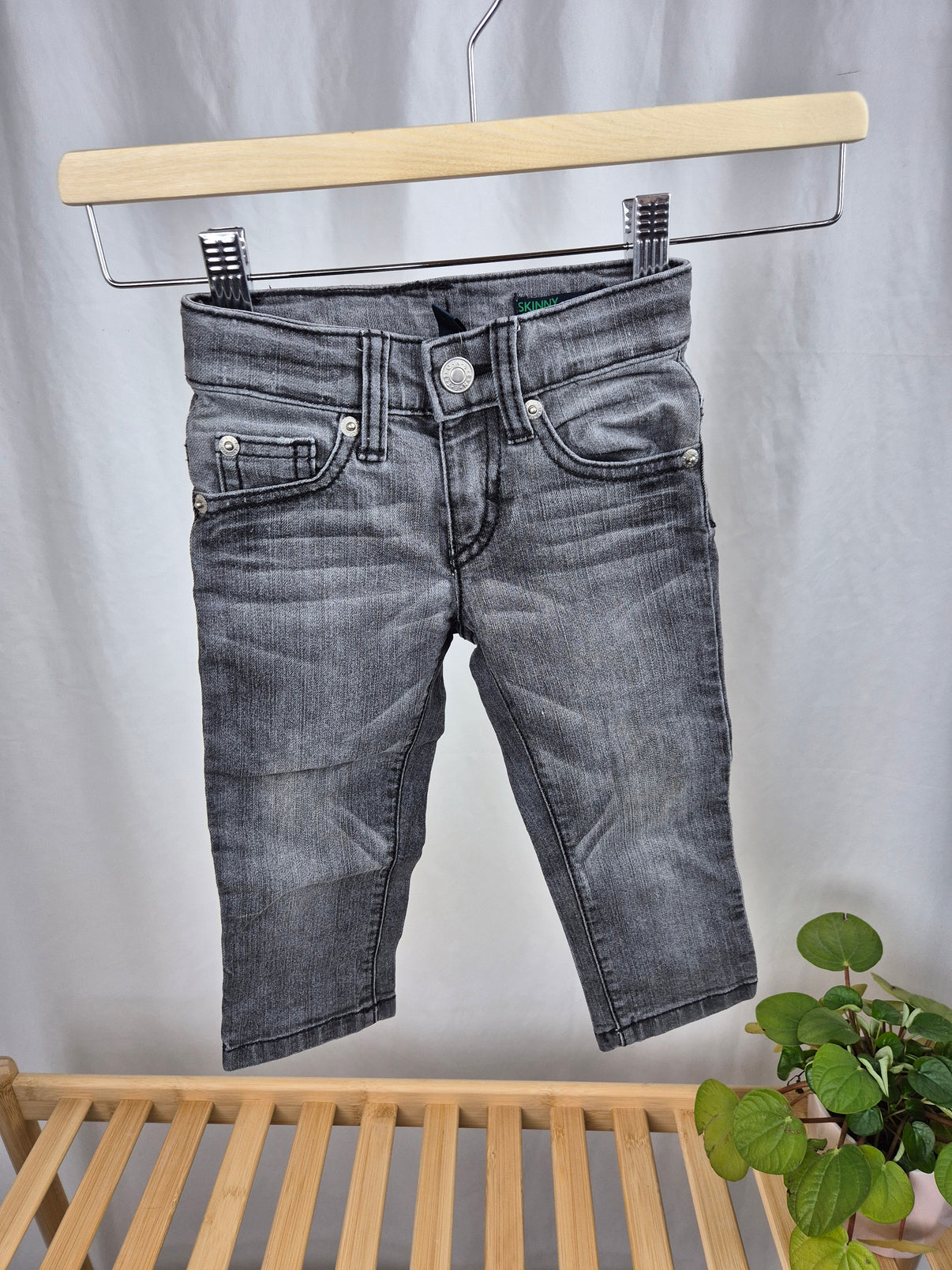 Moderní dětské džíny Skinny od značky United Colors of Benetton ve velikosti 82 v šedém opraném odstínu jsou stylovým a zároveň pohodlným kouskem pro každodenní nošení. Úzký střih s mírně elastickým materiálem skvěle padne, klasické kapsy, poutka na pásek a zapínání na druk dodávají kalhotám dospělácký vzhled. Vhodné jak pro holčičky, tak pro kluky – skvěle se hodí k mikině, svetříku nebo tričku na ven, do školky i na návštěvu. Nadčasový a univerzální kousek do dětského šatníku.