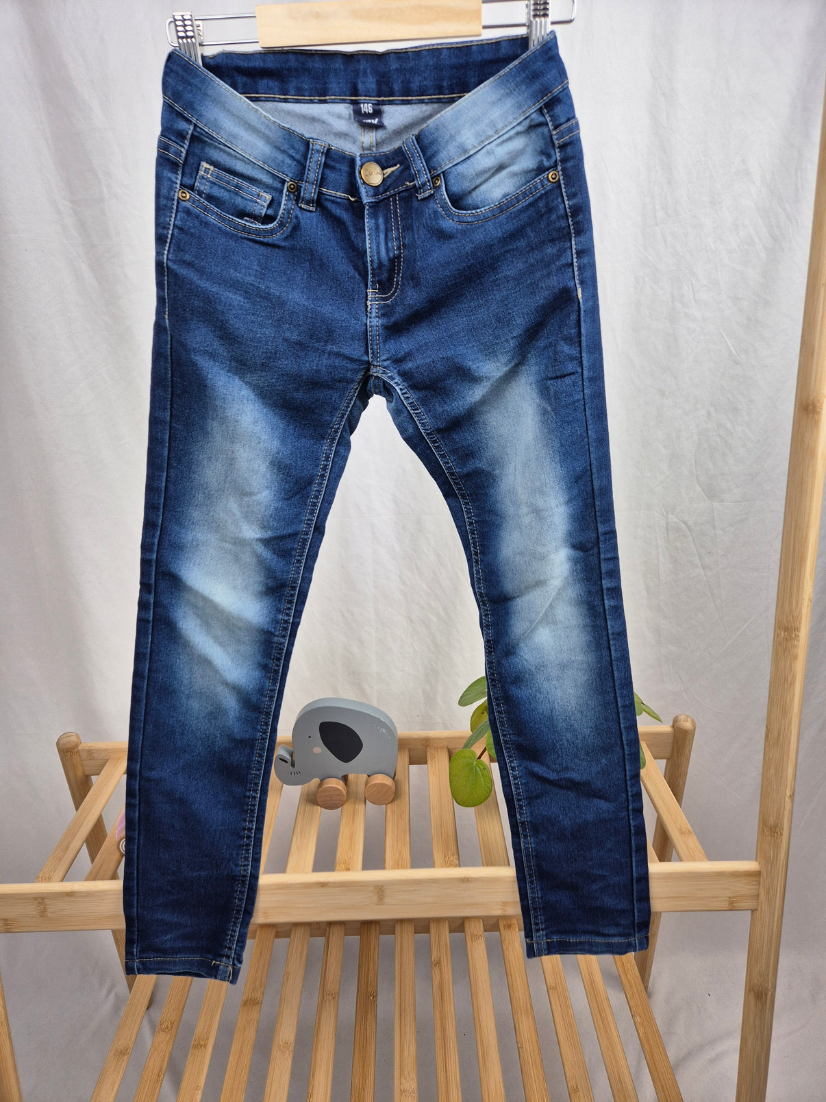 Dívčí džíny značky Y.F.K. ve velikosti 146 jsou stylovým a pohodlným kouskem na každodenní nošení. Tmavě modrý denim s efektem vyšisování na přední i zadní straně doplňuje kontrastní prošití a jemné ozdobné výšivky na zadních kapsách. Díky pružnému pasu se dobře přizpůsobí a zajistí pohodlí při pohybu. Skvělé kalhoty jak do školy, tak na volný čas.