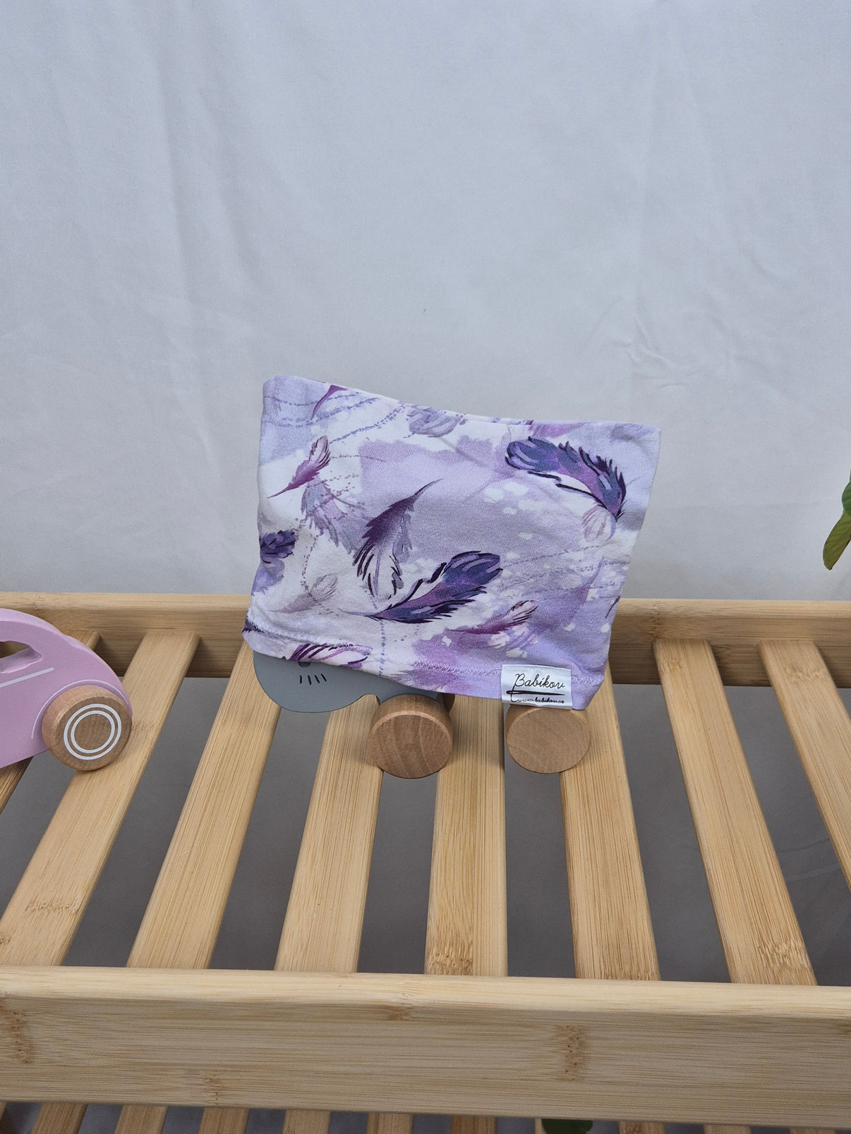 Krásná fialová čepička z české malovýroby s motivem jemných peříček. Vyrobena z příjemného a pružného materiálu, který se skvěle přizpůsobí dětské hlavičce a zajistí pohodlí během nošení. Elegantní vzor v pastelových odstínech dodává čepičce stylový vzhled, který se hodí k různým outfitům. Ideální na jarní a podzimní období, chrání před chladem a větrem. Skvělý doplněk pro malé parádnice.