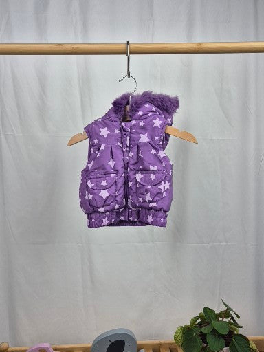 Hravá fialová vesta s hvězdičkovým vzorem od značky Cherokee je skvělým doplňkem do dětského šatníku na chladnější dny. Jemný lesklý materiál je nejen stylový, ale také praktický a snadno se čistí. Vesta je zateplená a poskytuje skvělou ochranu proti větru a chladu. Kapuce s měkkým kožíškem dodává vestě roztomilý vzhled a zajišťuje extra teplo pro hlavičku. Praktické kapsy na přední straně jsou ideální na schování drobných pokladů. Skvěle se hodí přes mikinu nebo svetr na procházky i rodinné výlety!