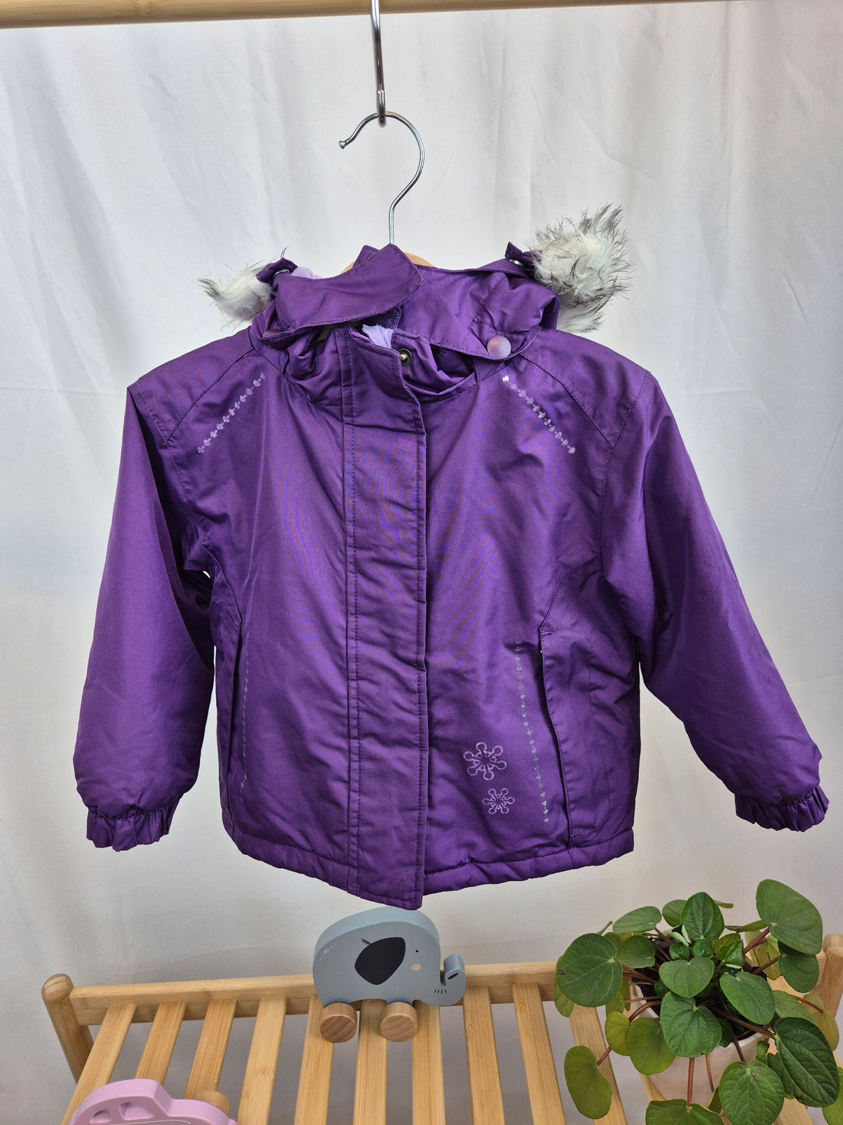 Stylová a funkční zimní bunda Crivit ve výrazné fialové barvě s jemnými výšivkami sněhových vloček potěší každou malou parádnici. Hřejivá podšívka, kapuce s chlupatým lemem a zapínání na zip s překrytím proti větru zaručují pohodlí i při delších zimních dobrodružstvích. Nechybí praktické kapsy na poklady ani reflexní prvky pro lepší viditelnost. Skvělá volba do školky, na hory i na stavění sněhuláka – prostě bunda, která zvládne každou zimní výzvu.