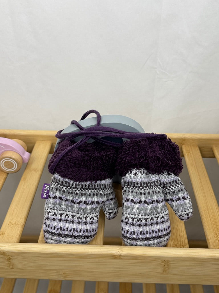 Fialové rukavičky na šňůrce se zapínáním na suchý zip Maja 1-2roky