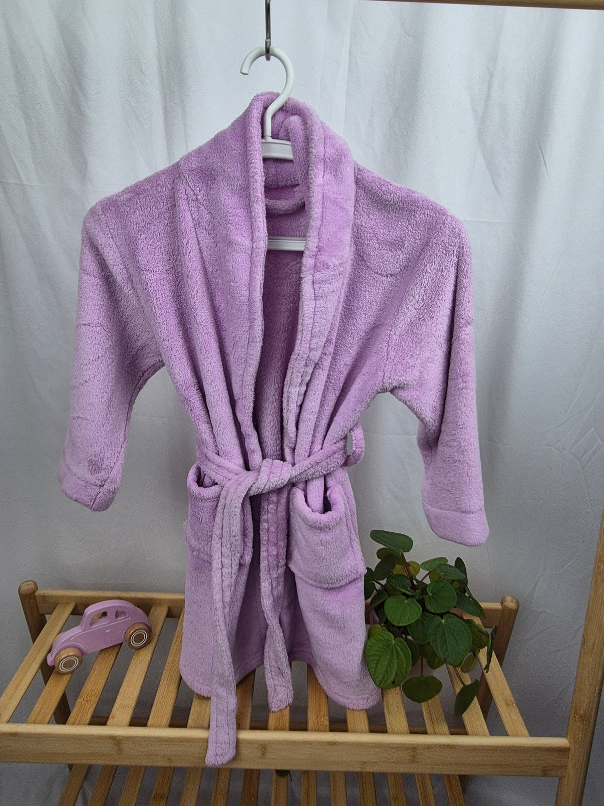 Měkoučký fialový dětský župan je ideální pro chladnější rána nebo příjemné zahřátí po koupání. Hebký materiál zajistí maximální pohodlí, zatímco klasický střih s páskem na zavazování a praktickými kapsami dodává županu stylový a pohodlný vzhled. Skvělý kousek pro domácí pohodu a relaxaci!