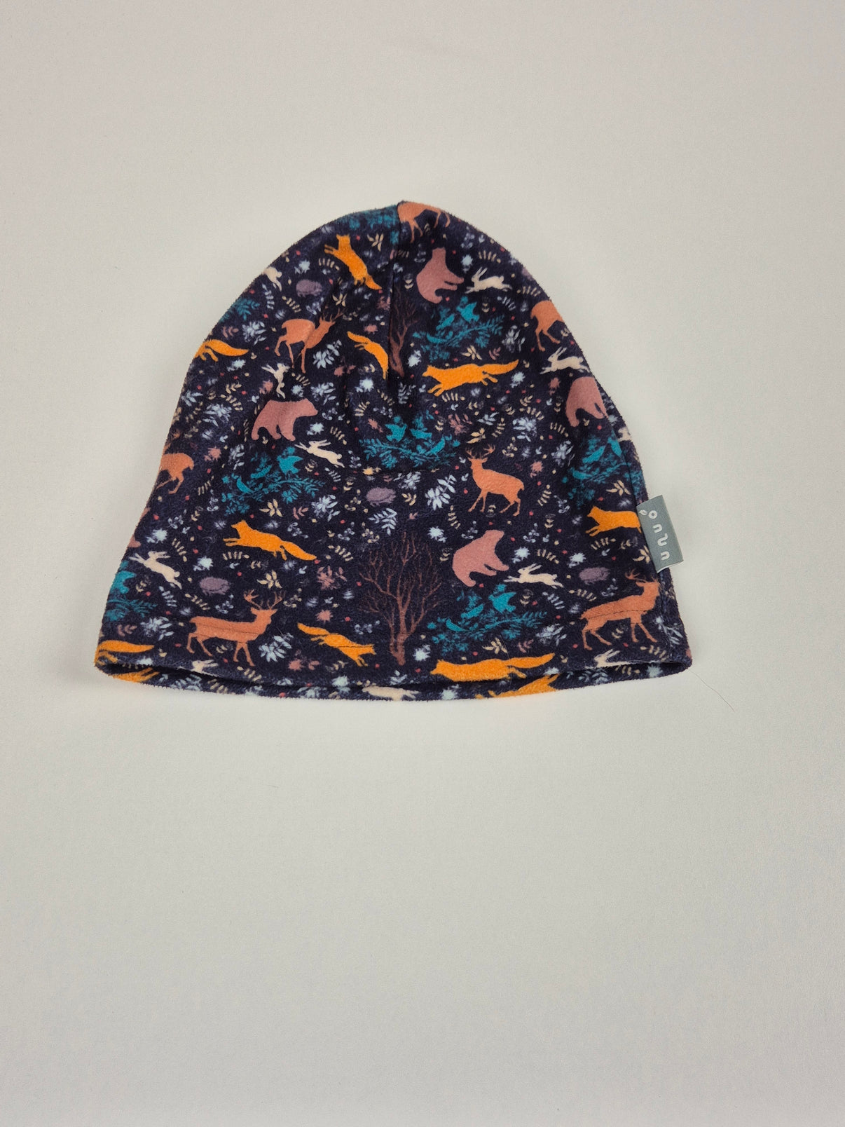 Teplá fleecová čepice Unuo s kouzelným lesním vzorem. Měkký fleece zahřeje i v chladných dnech, ale zůstává lehký a příjemný na dotek. Díky pružnému střihu dobře sedí a neklouže z hlavičky. Ideální na podzim, zimu i jarní výlety do přírody.