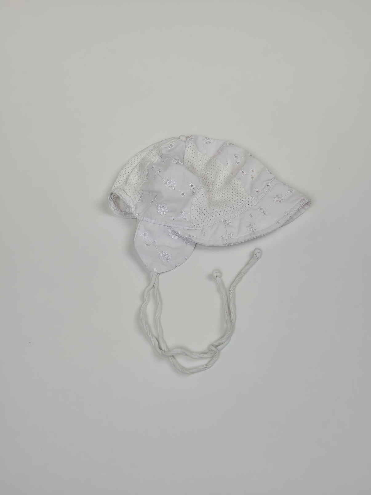 Lehoučká bílá čepička Spark s jemnou květinovou výšivkou a vzdušnými perforovanými panely je ideální na teplé dny. Díky zavazování pod bradou krásně drží na hlavičce i u nejmenších miminek a...