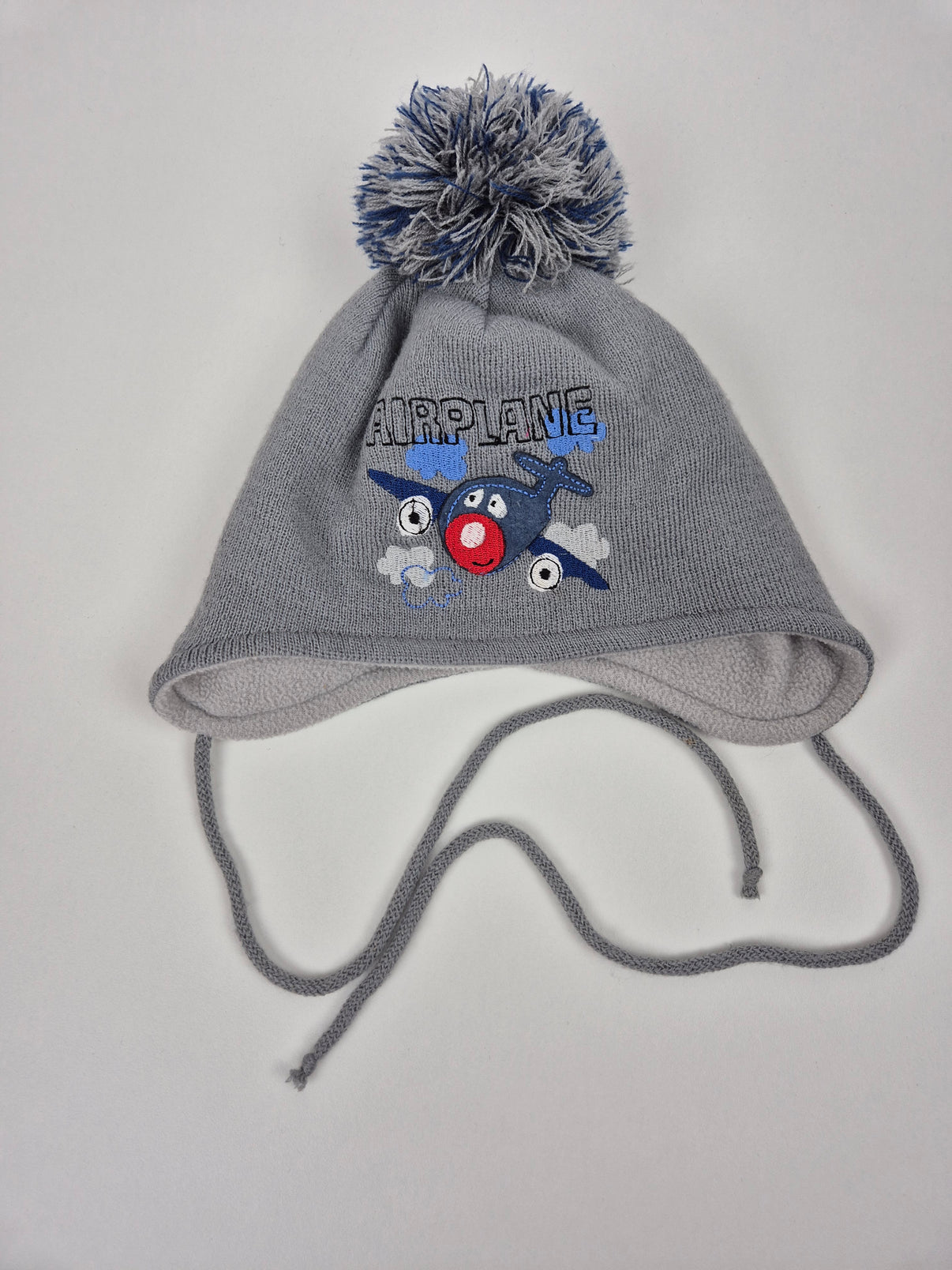 Šedá zimní čepice značky Sting ve velikosti 86/92 je jako stvořená pro malé dobrodruhy. Veselý výšivkový motiv letadla s nápisem "Airplane" a dvoubarevná bambule dodávají čepici hravý vzhled. Měkký fleecový vnitřek udrží ouška hezky v teple a šňůrky zajistí, že čepice zůstane na místě i při dovádění venku. Ideální volba pro kluky na zimní procházky a sněhové radovánky.