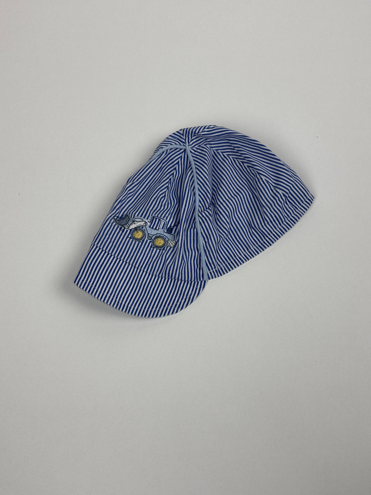 Modrobílá kšiltovka od polského výrobce s jemným proužkem a výšivkou bagru. Lehká a prodyšná látka ideální pro jarní a letní období. Kšilt chrání oči před sluncem, zatímco měkký okraj a gumička v zadní části zajišťují pohodlné nošení bez otlaků. Stylový doplněk pro malé dobrodruhy.