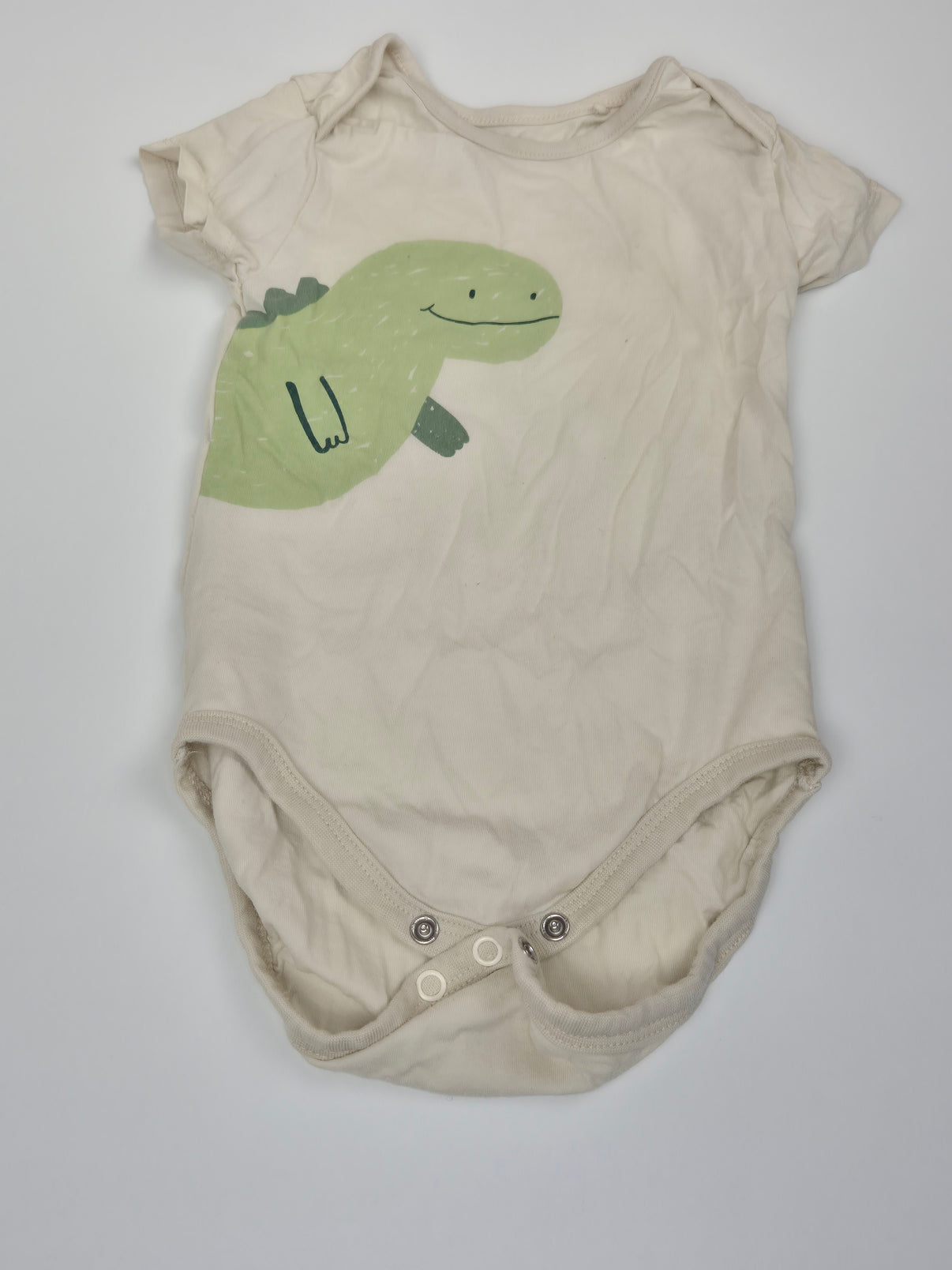 Jemné bavlněné body Sinsay v krémové barvě s roztomilým potiskem zeleného dinosaura. Měkký a příjemný materiál je ideální na každodenní nošení – doma, do kočárku i do školky. Praktické zapínání mezi nožičkami usnadňuje přebalování a střih dobře sedí miminku po celý den.