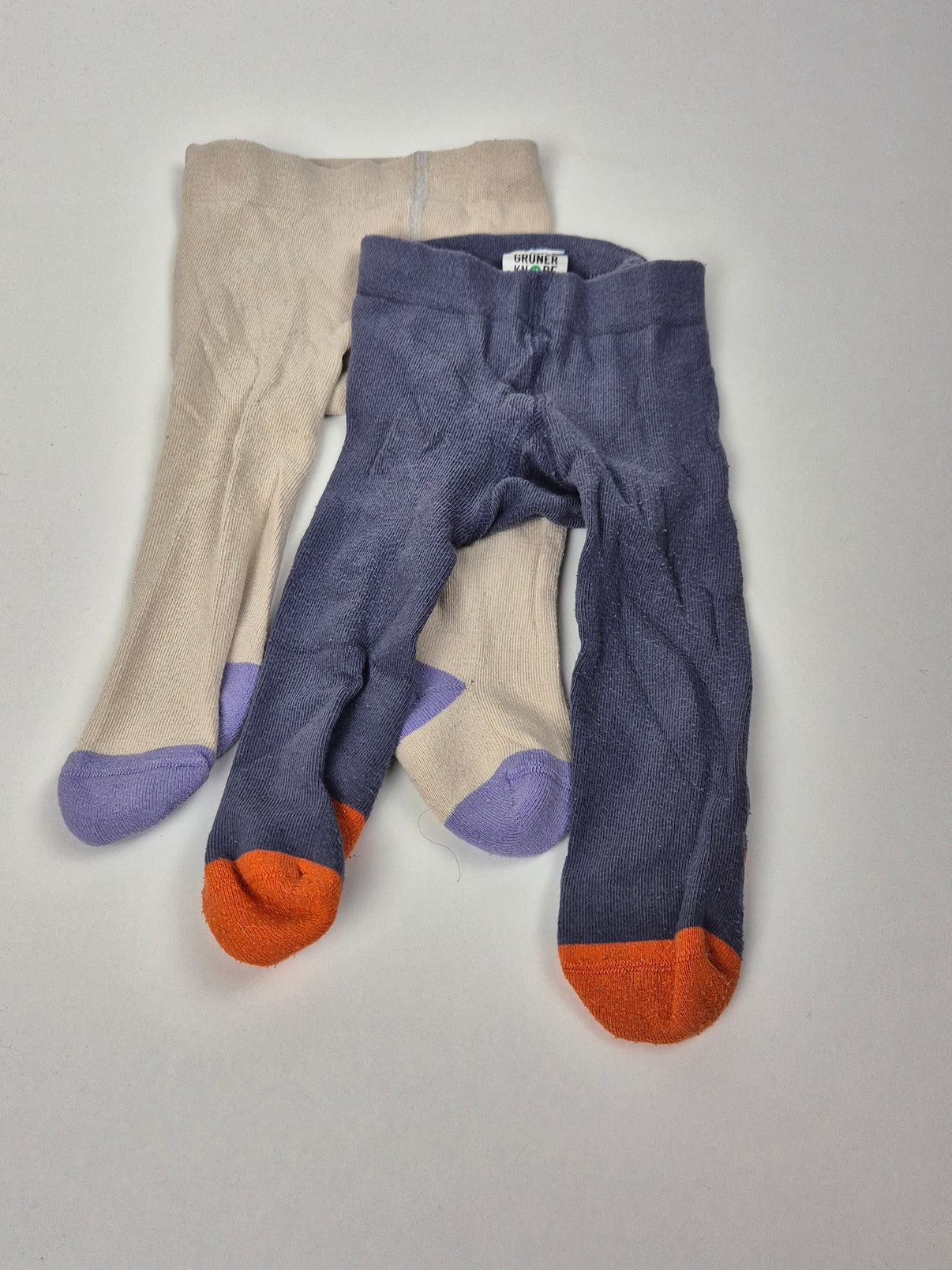 Roztomilá sada 2 ks punčocháčů Tchibo ve velikosti 62/68.✔️ Jedny v béžové barvě s fialovými detaily a motivem broučka na zadečku.✔️ Druhé v tmavě modré barvě s oranžovými špičkami a...