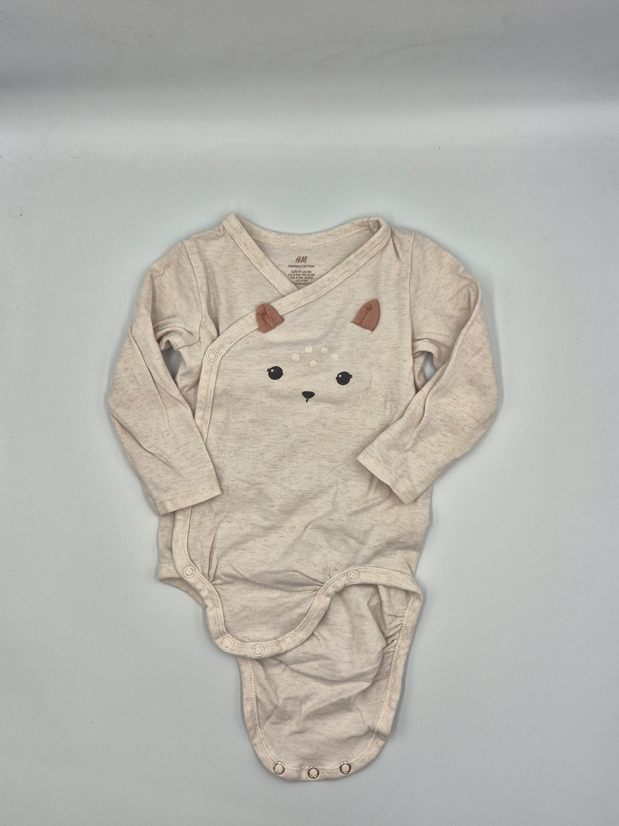 Dětské body H&M ve velikosti 74 v jemném krémovém melírovaném odstínu, který působí velmi něžně a přírodně.