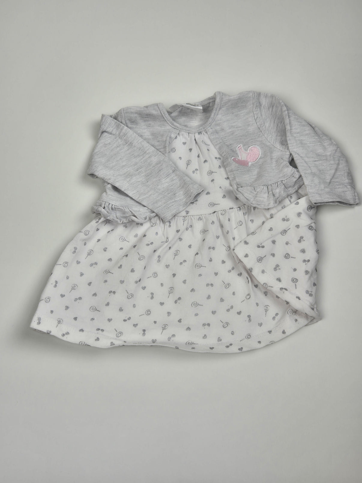 Roztomilé šatičky značky Ergee ve velikosti 68 jsou jako stvořené pro malé princezny. Kombinace bílého spodního dílu s drobným potiskem srdíček a spirálek a šedého horního dílu ve vzhledu bolerka působí elegantně i pohodlně zároveň. Výšivka růžového srdíčka dodává šatům něžný detail. Měkký materiál zajistí pohodlí po celý den. Skvělé na návštěvy, focení i slavnostní příležitosti.