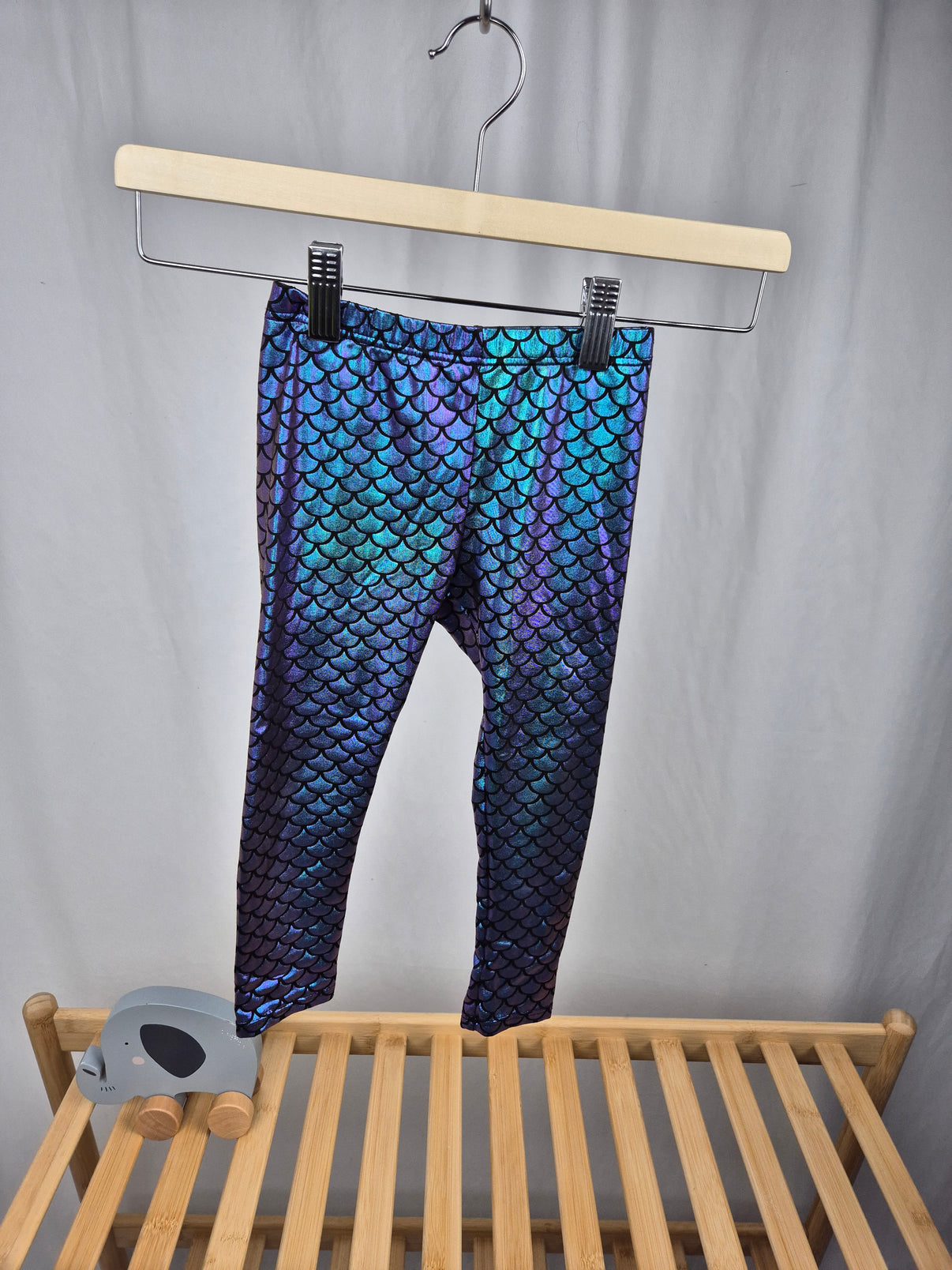 Lesklé dětské legíny Sinsay v kouzelné mořské kombinaci modré, tyrkysové a fialové s potiskem připomínajícím šupinky mořské víly. Pružný materiál se krásně přizpůsobí postavě a zajistí pohodlí při pohybu. Perfektní volba pro malé parádnice – na doma, oslavu nebo do školky.