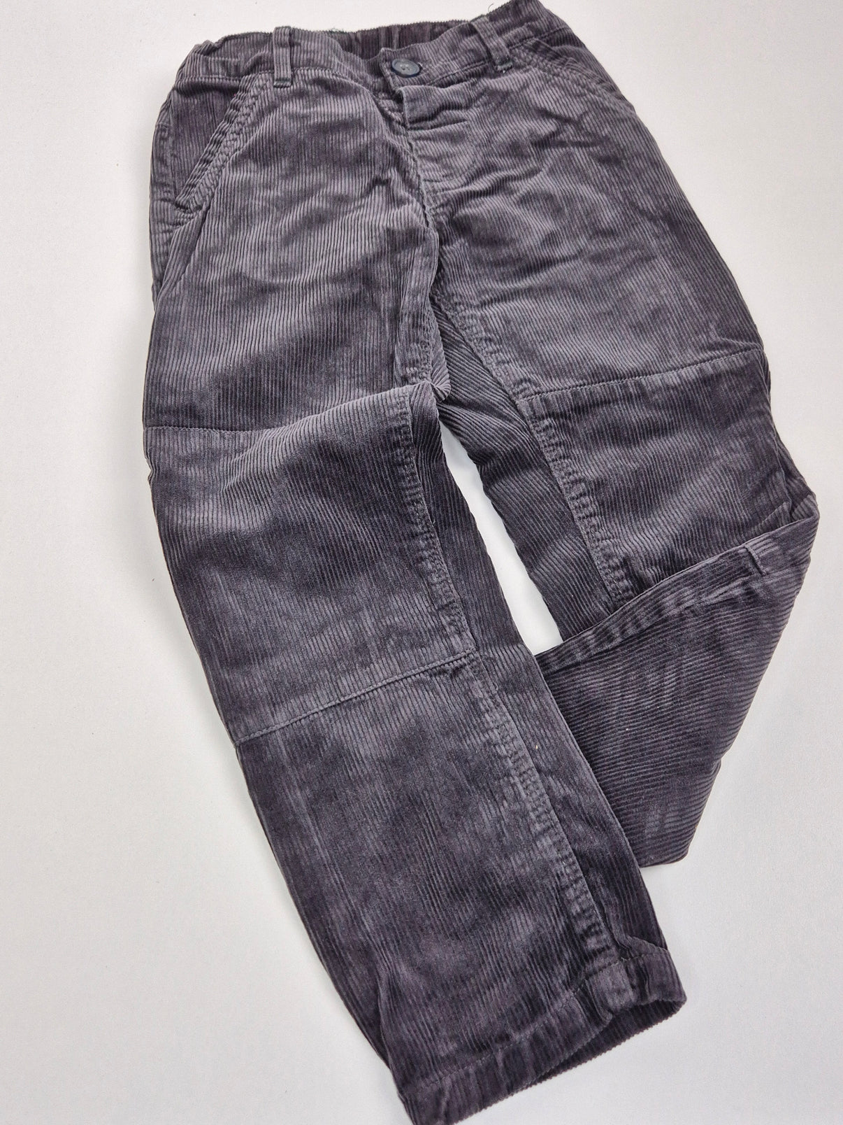 Tmavě šedé manšestrové kalhoty Mini Club jsou krásným, měkkým a hřejivým kouskem do chladnějších dnů. Manšestr dodává kalhotám příjemný retro nádech, zatímco praktický střih s kapsami a zapínáním zajišťuje pohodlí při nošení. Díky neutrální barvě a pevnějšímu materiálu jsou skvělé na běžné nošení i venkovní dobrodružství. Hodí se především pro chlapečka, ale klidně mohou být i unisex.