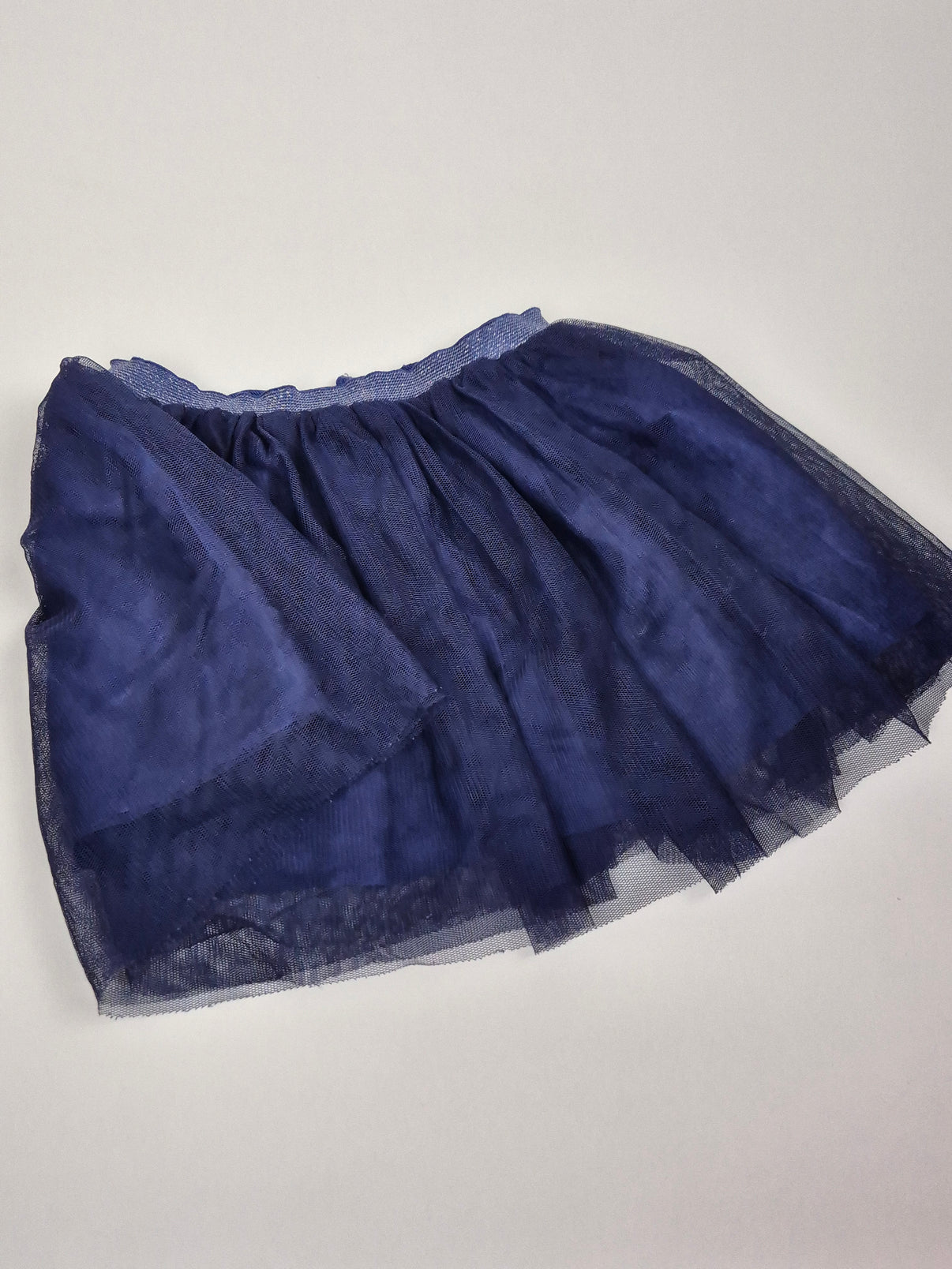 Lehká a vzdušná sukně v tmavě modrém až námořnickém odstínu, která dodá outfitu kouzelný nádech. Vícevrstvý jemný tyl vytváří krásný objem a při pohybu se sukně hezky vlní. V pase je pohodlná pružná guma, díky které se snadno obléká a dobře drží. Skvělá volba na slavnostnější příležitosti, focení, oslavy, ale i na běžné nošení pro malé parádnice, které mají rády sukýnky.