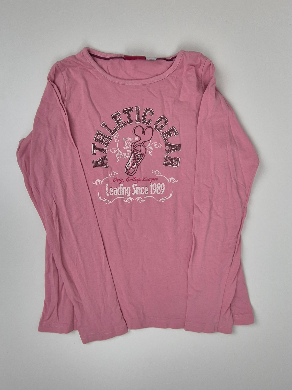 Dívčí tričko značky Pepperts ve velikosti 146/152 v růžové barvě. Má dlouhý rukáv a potisk s nápisem Athletic Gear – Leading Since 1989, který mu dodává sportovní a ležérní vzhled. Příjemný materiál a pohodlný střih dělají z trička ideální volbu na každý den, ať už do školy, nebo na volný čas.