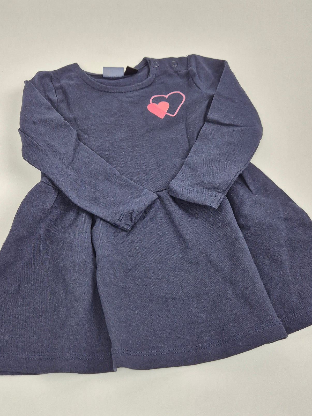 Tmavě modré bavlněné šaty Lupilu s dlouhým rukávem jsou jemně zdobené dvojicí srdíček v růžových tónech – krásný, jednoduchý detail, který jim dodává roztomilý vzhled. Příjemný materiál a pohodlný střih...