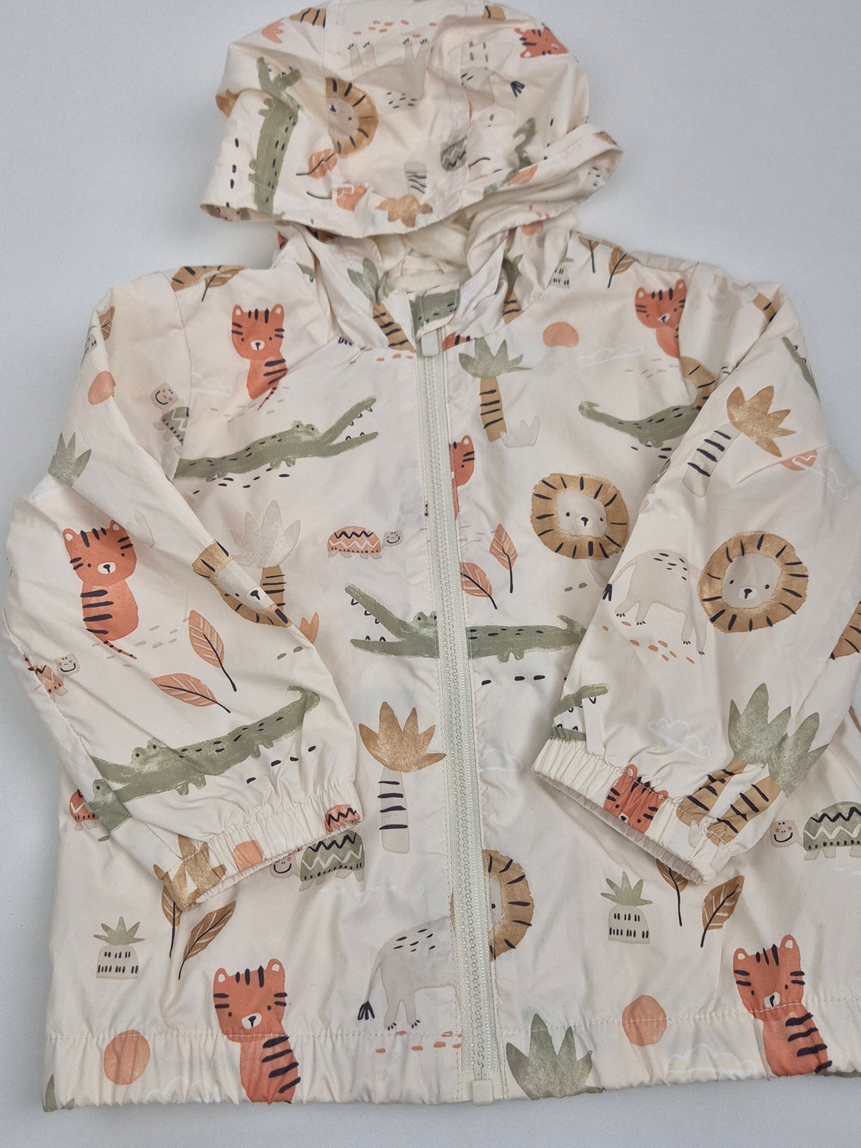 Lehká bunda F&F s roztomilým safari potiskem je ideální na jaro i podzim, kdy je potřeba ochránit před větrem, ale zároveň zůstat v pohodlí. Jemný krémový podklad doplňují pastelové ilustrace tygrů, lvů, krokodýlů a rostlinek, které bundě dodávají hravý přírodní vzhled.
