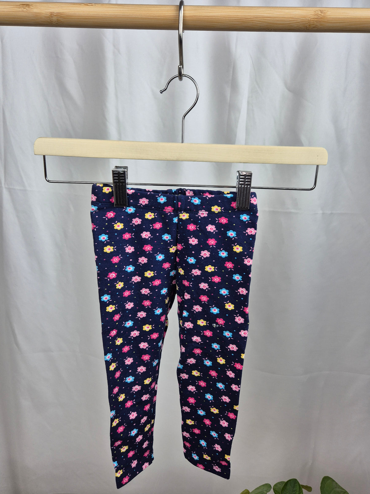 Veselé dětské legíny ve velikosti 86, ideální pro malé holčičky. Tmavě modrý podklad zdobí hravý květinový vzor v růžové, žluté a modré barvě, který rozzáří každý outfit. Pružný pas zajišťuje pohodlné nošení během celého dne – ať už na hraní doma, do školky nebo na procházku. Díky příjemnému materiálu se snadno oblékají a neomezují v pohybu. Skvělý základ šatníku pro každý den.