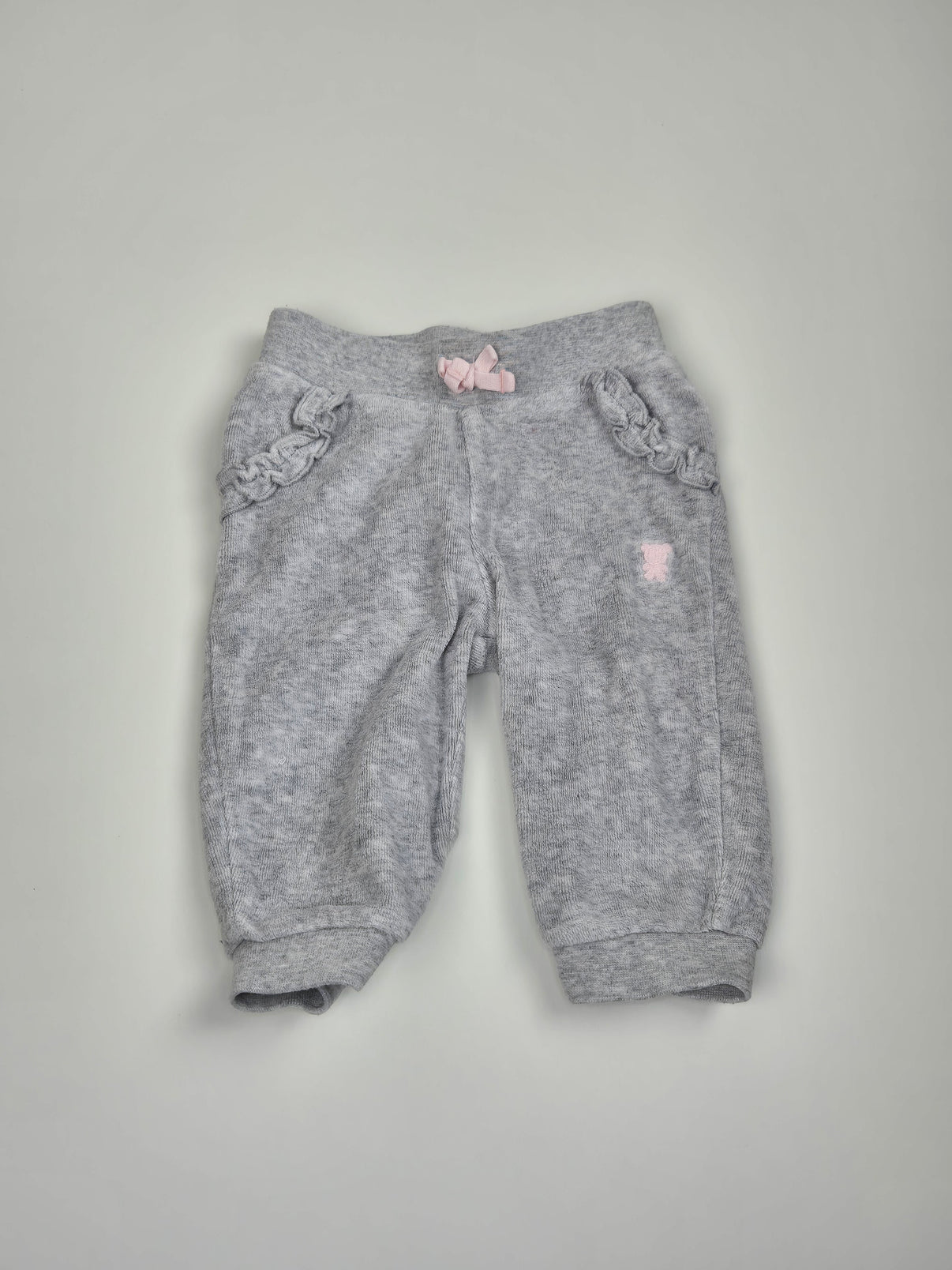Roztomilé šedé tepláčky Original Marines ve velikosti 56/62 jsou ideální volbou pro malé parádnice. Měkký, příjemný materiál s česaným rubem zaručí pohodlí i v chladnějších dnech. Jemné růžové detaily v podobě výšivky medvídka, ozdobné mašličky a kanýrků u kapes dodávají tomuto kousku něžný dívčí nádech. Skvělý kousek na doma i na cesty.
