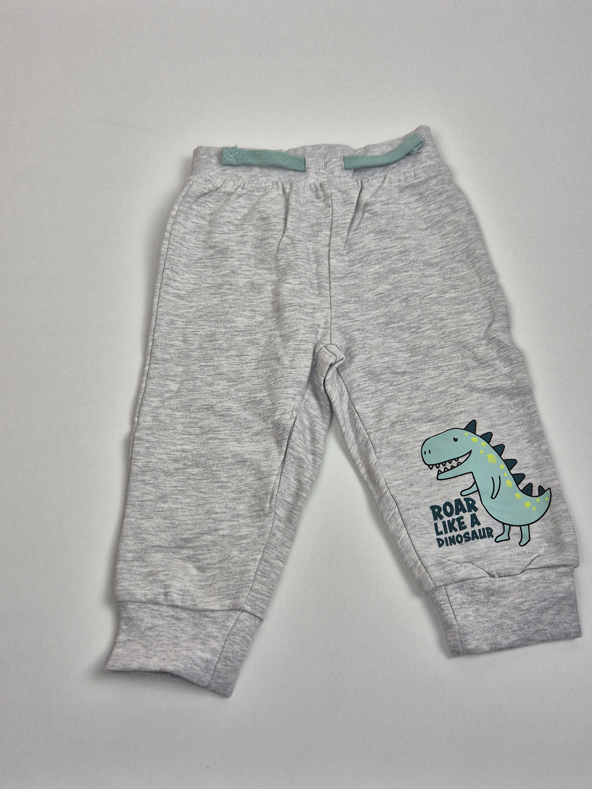 Světle šedé melírované tepláky s hravým dinosaurím motivem jsou ideální volbou na každodenní nošení. Veselý potisk dinosaura s nápisem dodává kousku hravý charakter a krásně vyniká na neutrálním podkladu. Pohodlný střih s pružným pasem a měkkou šňůrkou zajistí komfort při hraní, lezení i odpočinku. Pružné lemy na nohavicích dobře drží a tepláky se tak skvěle hodí do školky, na doma i na ven. Kousek je laděný spíše pro kluka.
