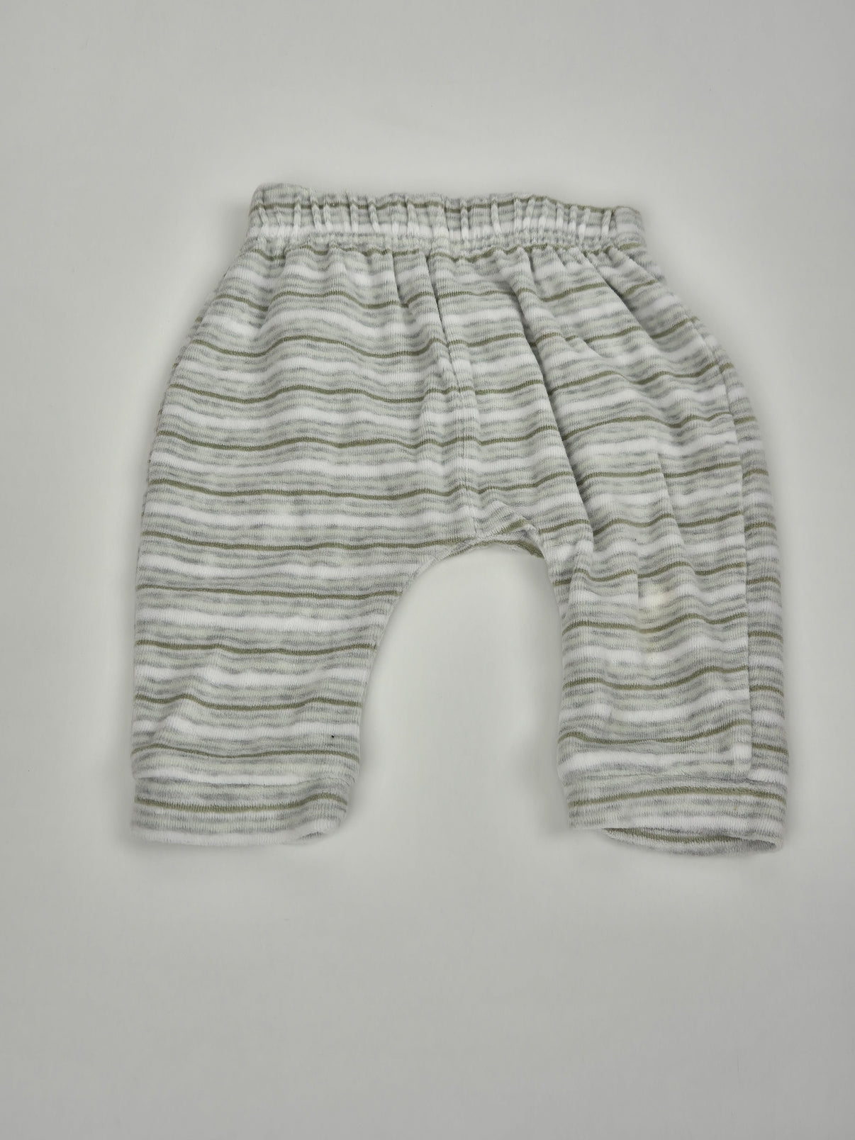 Měkoučké tepláčky Ergee ve velikosti 68 jsou ideální na každodenní nošení i domácí pohodu. Bílo–šedozelené proužky působí jemně a neutrálně, takže se hodí jak pro chlapečky, tak pro holčičky. Pohodlný pas do gumy zajistí, že tepláky dobře sedí a nikde netlačí. Skvělý základ šatníku pro malé miminko.